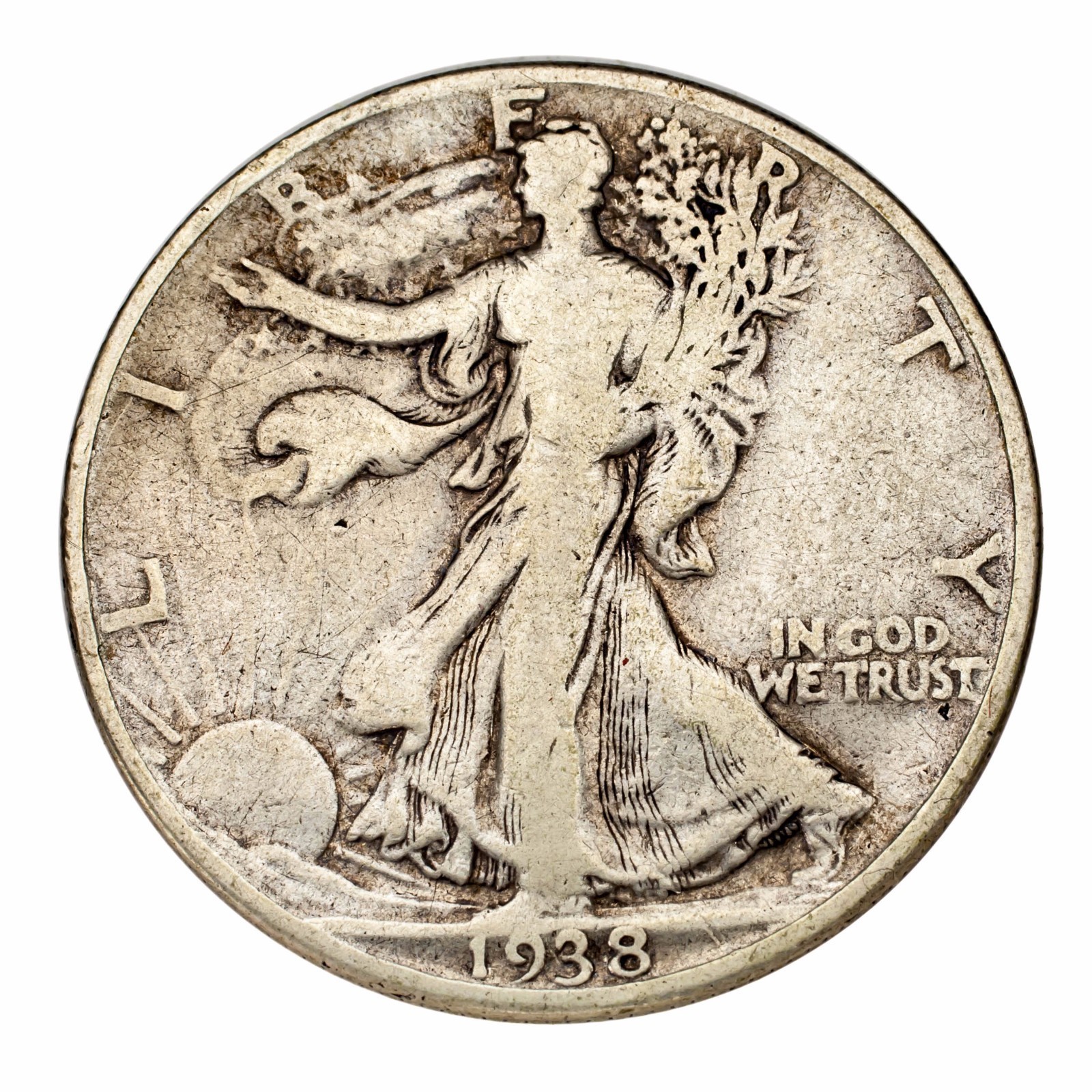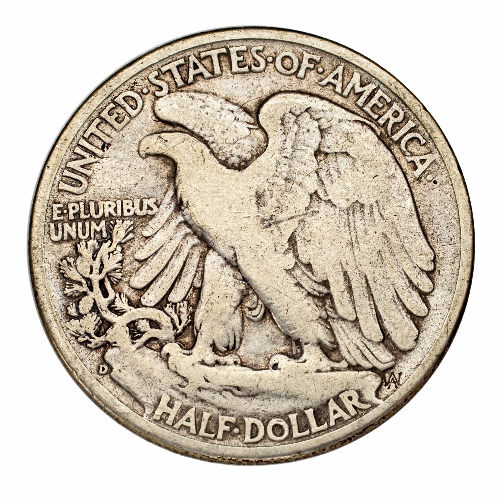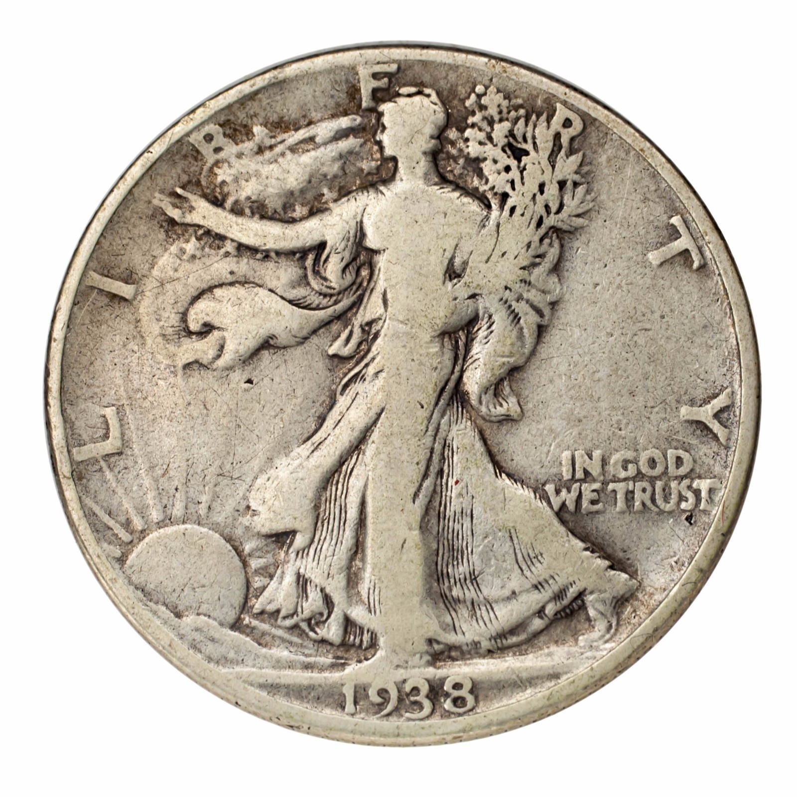 1938-D Silver Walking Liberty Half Dollar 50c (tres bon, condition VG)
