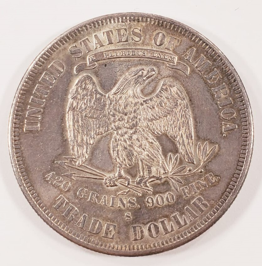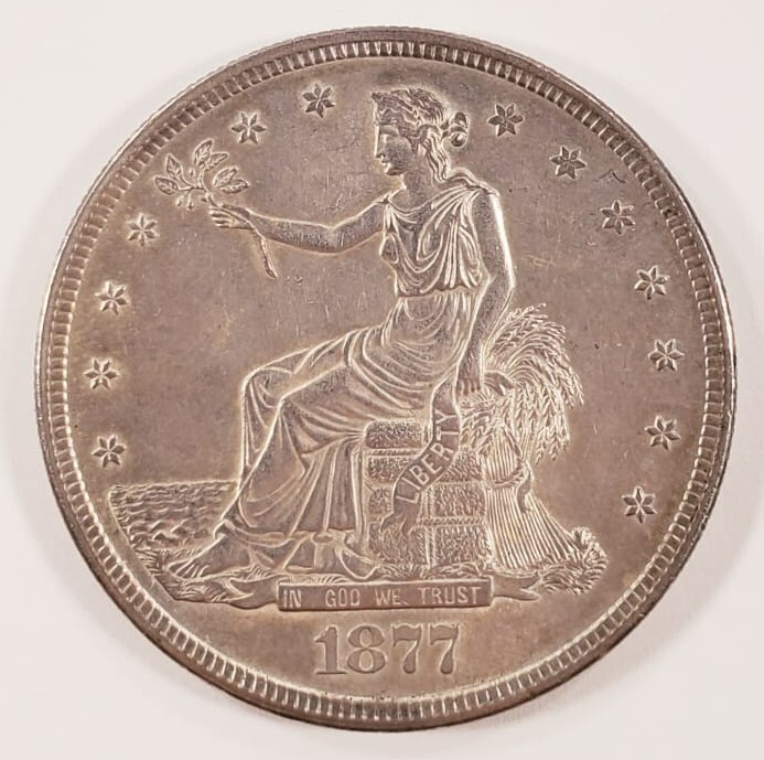 1877-S Commerce Dollar En Au État, Excellent Oeil Appeal, Certains Tonifiant