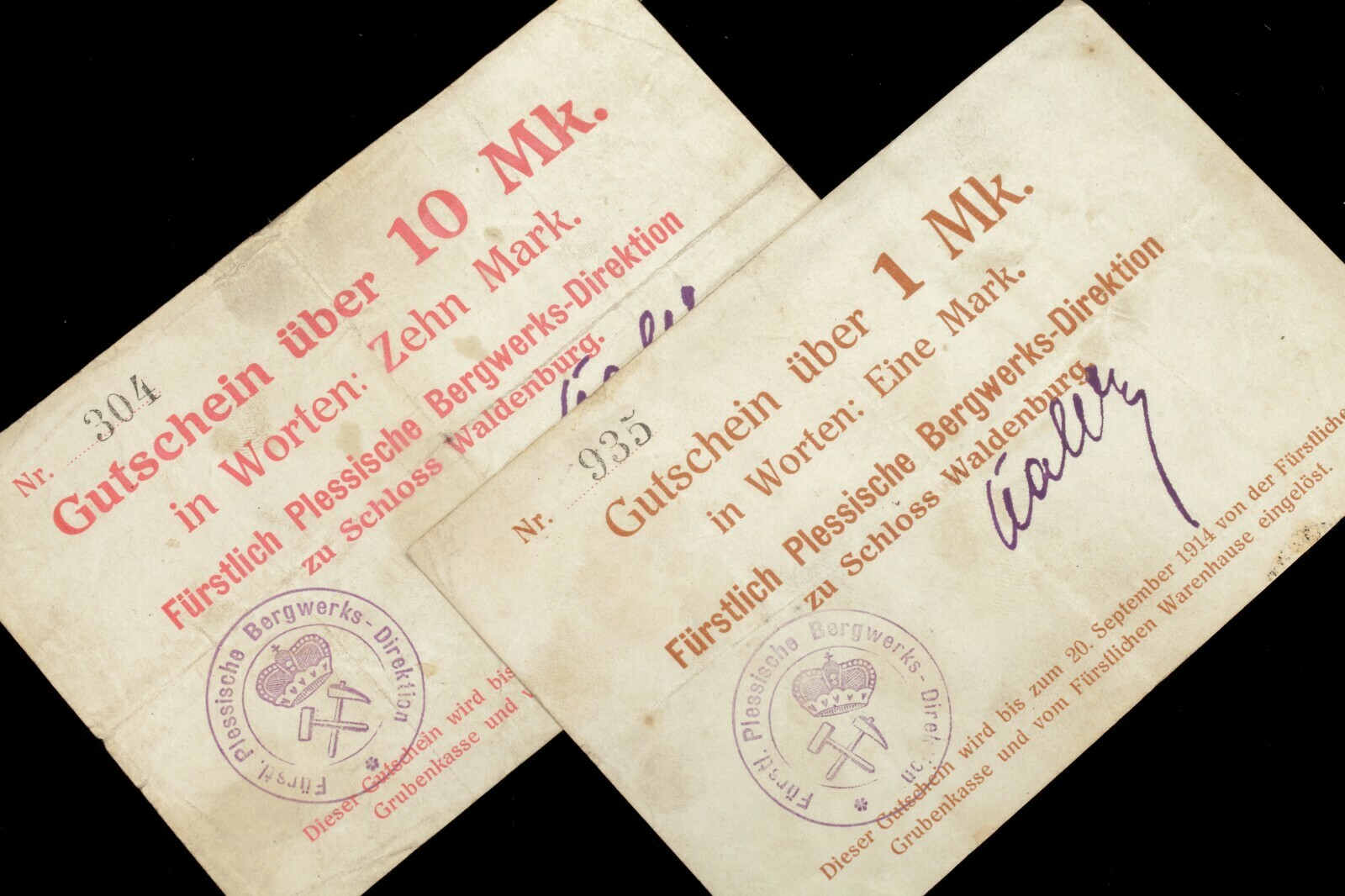 1914 Waldenburg 2pc Monnaie de Nécessité Kit World Guerre I Allemagne 1 & 10