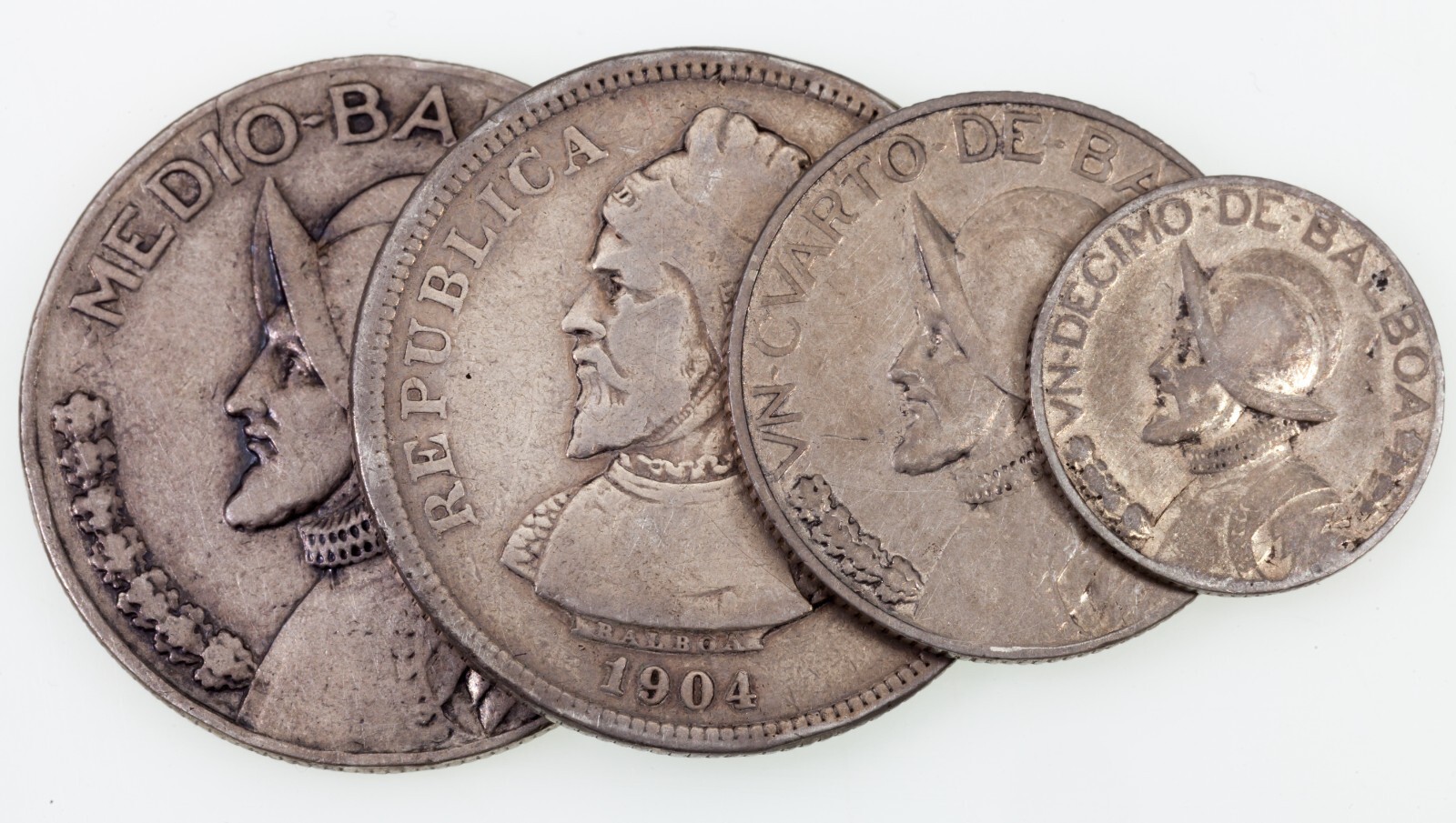 1904-1930 Lot de monnaie en argent Panama de 4 km # 4, 10.1, 11.1, 12.1, 13