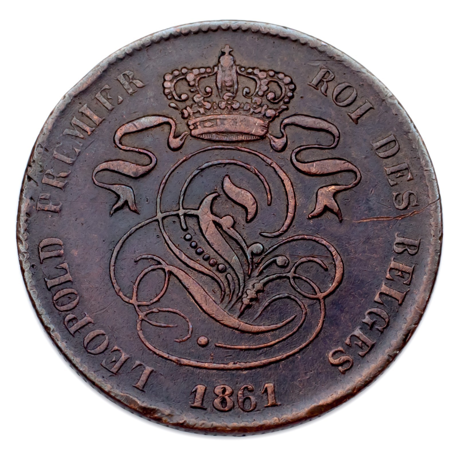 1861 Belgique 2 centimes Coin (Extra Fine, XF Condition) KM # 4.2