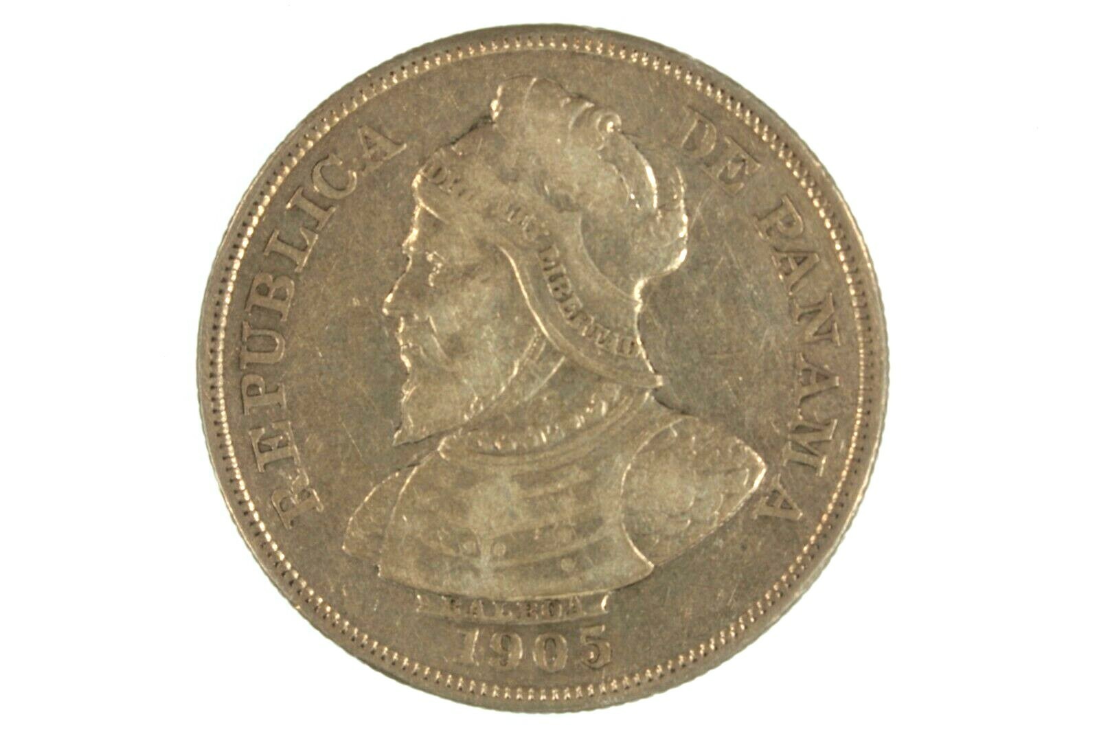 1905 Panama 50 centsimos Silver Coin (Condition XF) KM # 5
