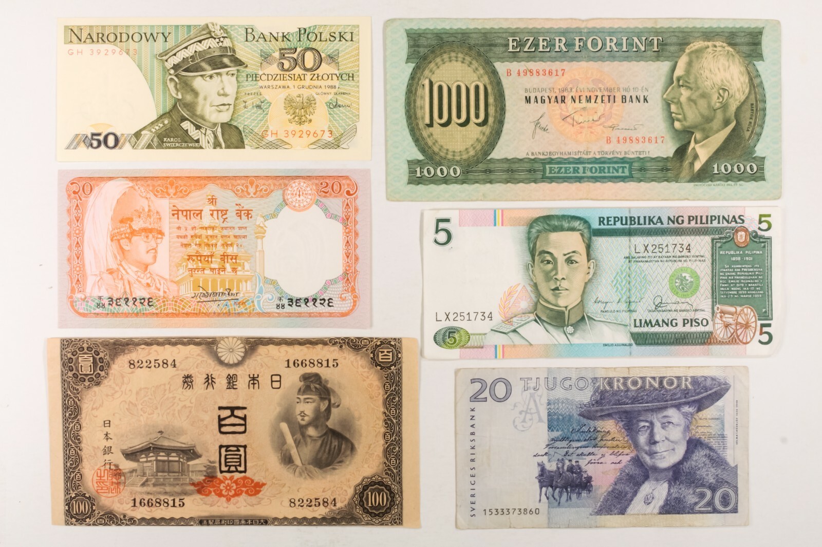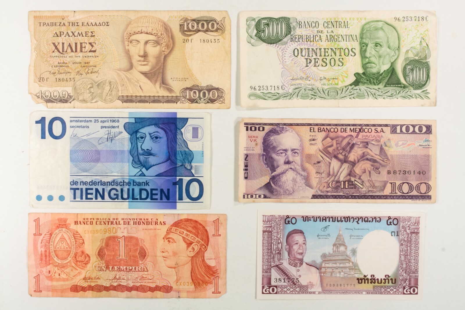 50 billets mondiaux. Europe, Asie, Amerique centrale et sud.