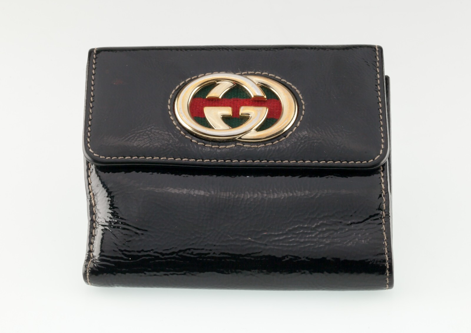 Gucci Cuir Verni Noir Britt Compact à Deux Volets Portefeuille Gentil
