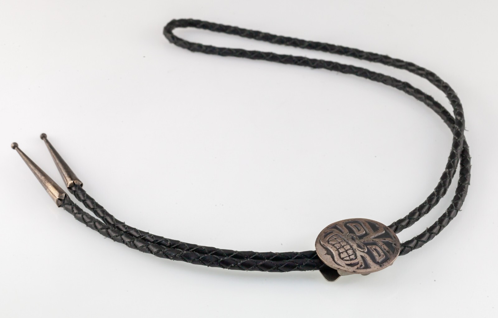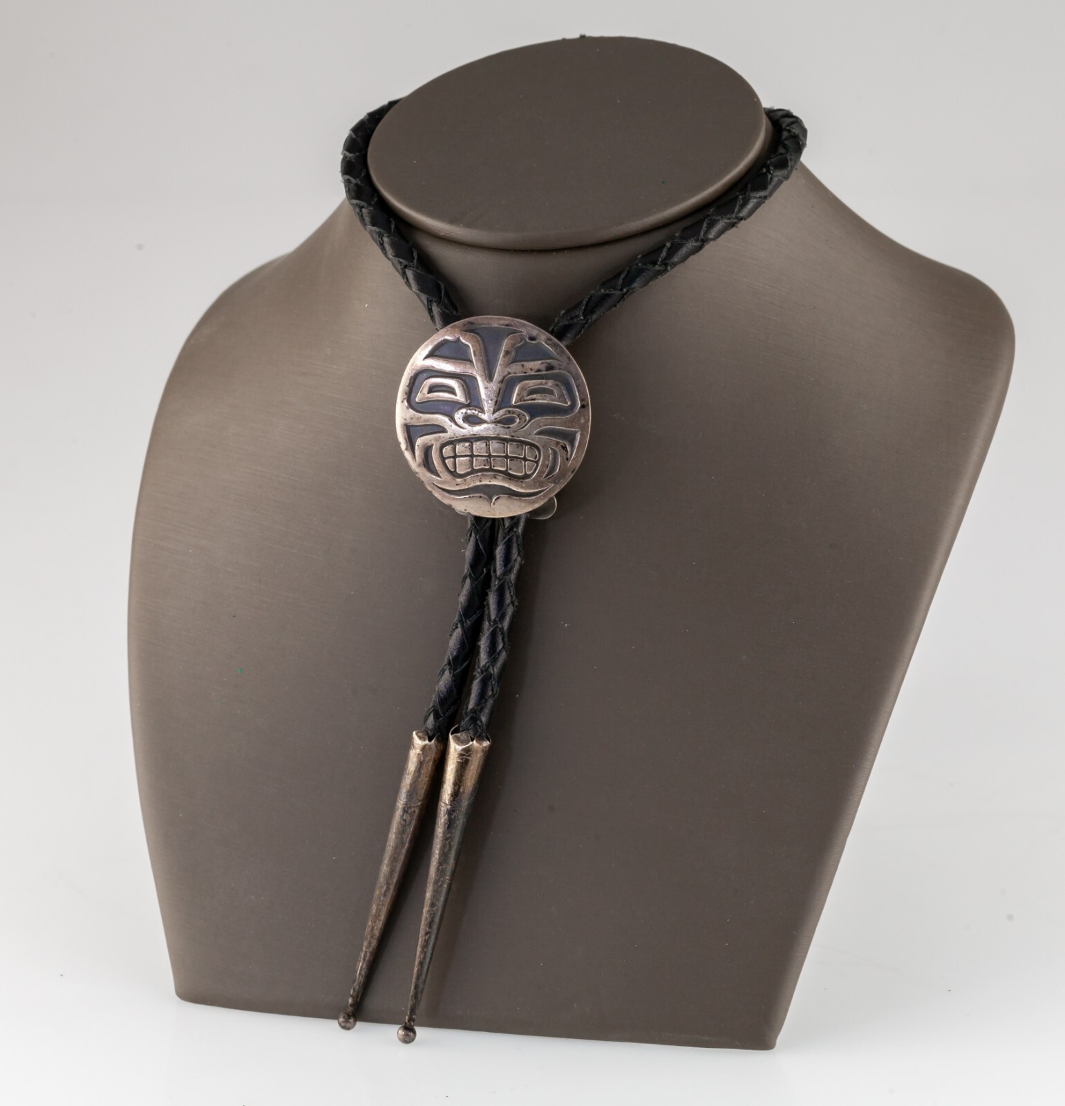 Argent Sterling Northwest Native Américain Singe Bolo Cravate Avec Tressé Cuir