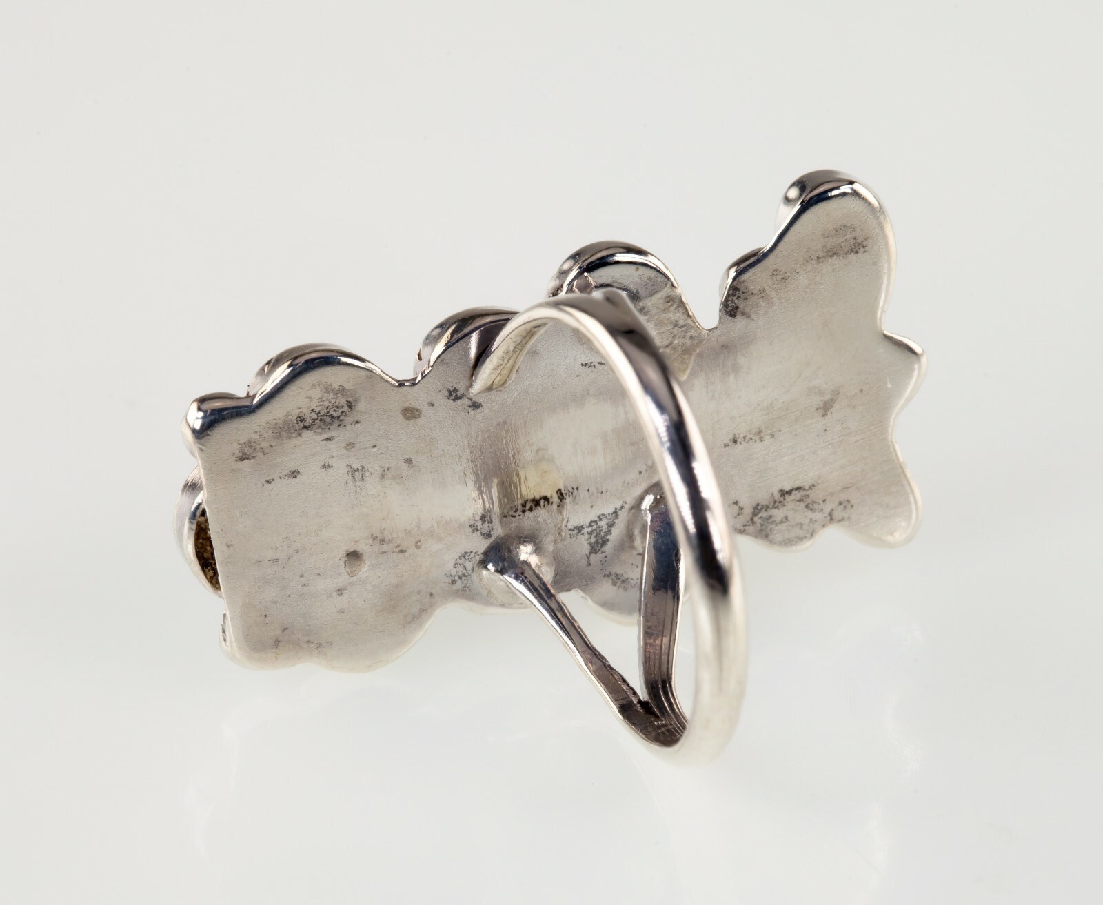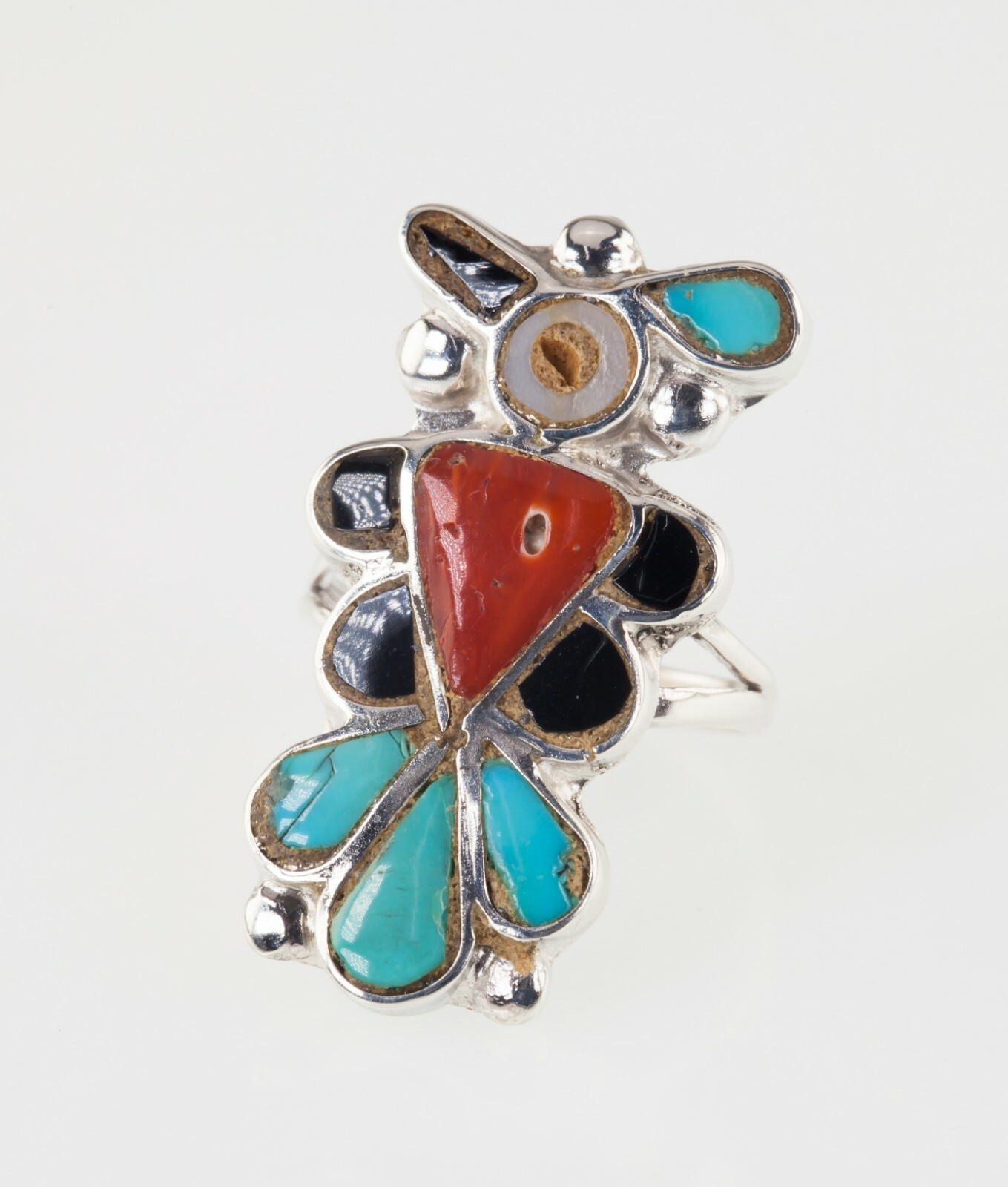 Zuni Thunderbird Inclay Sterling Silver Ring SZ: 3,75