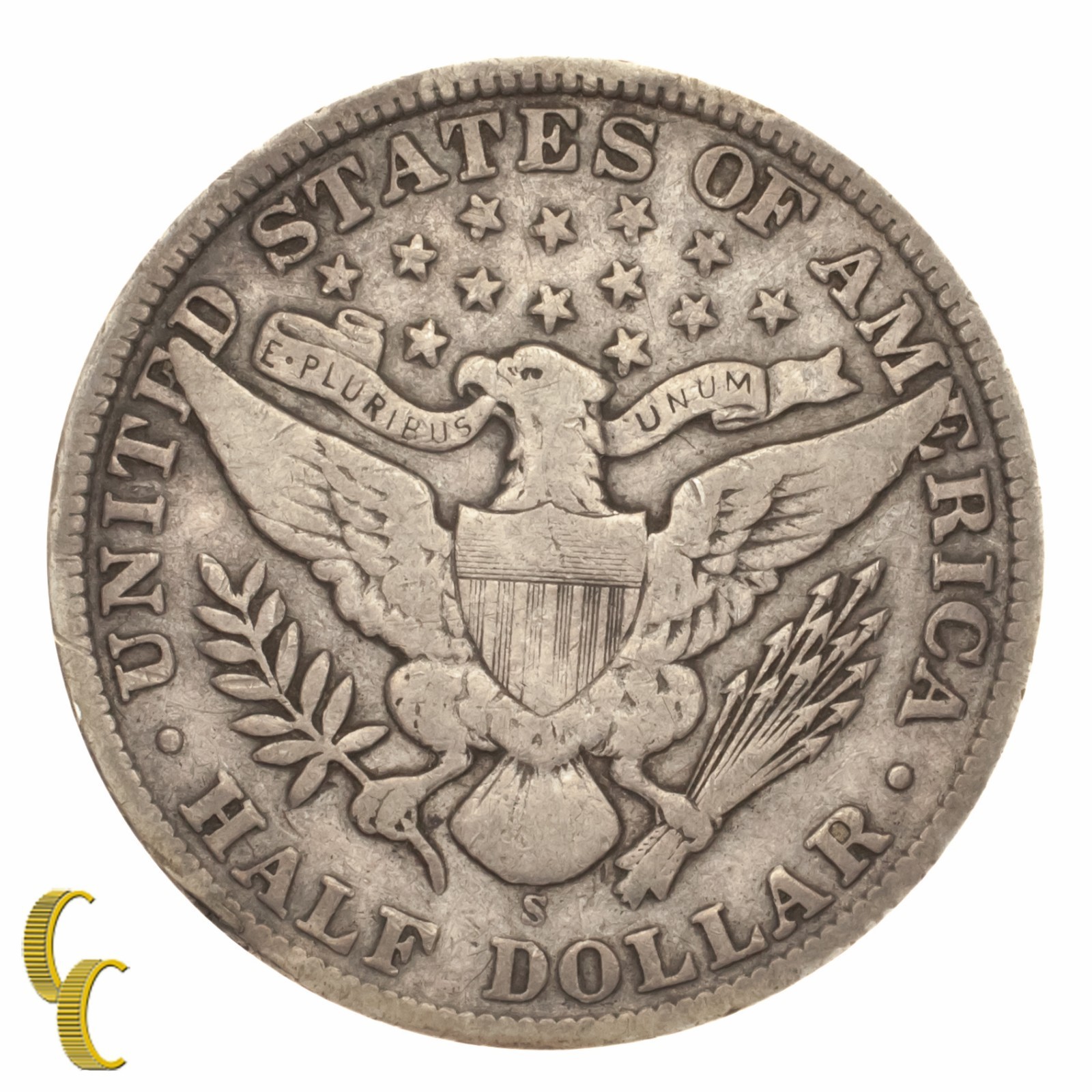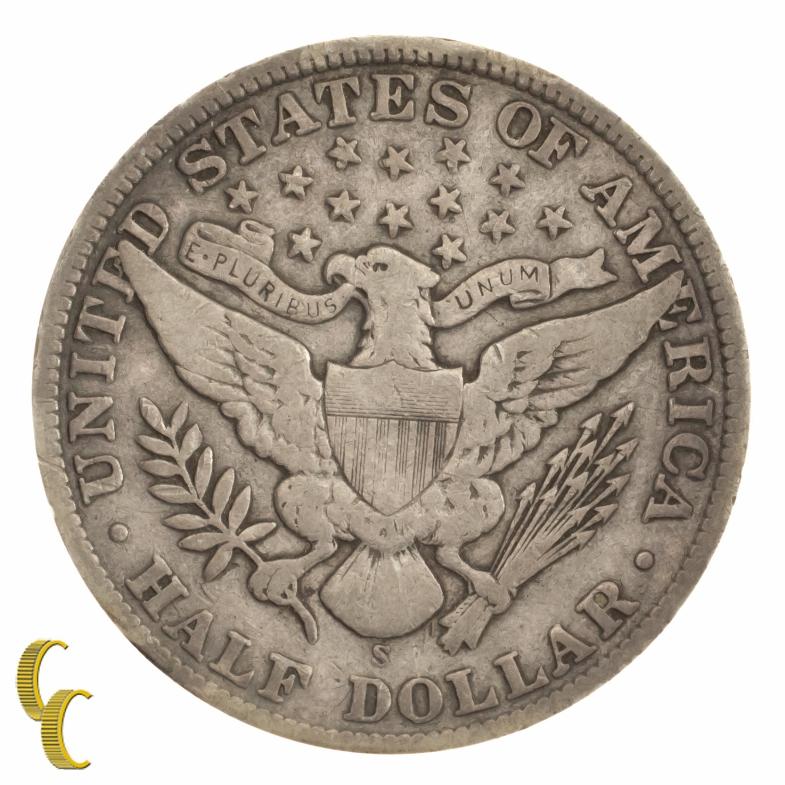 1908-S Argent Barber Demi Dollar 50C ( Fin, F État) Complet Fort Liberty