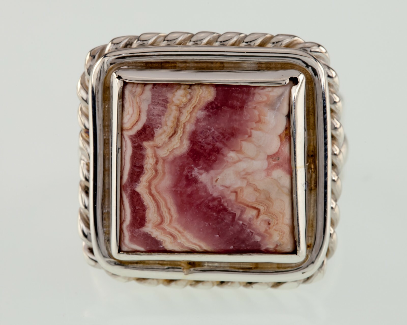 Grand Rose Agate Forme Ovale Sur Argent Sterling Taille Bague 6.25