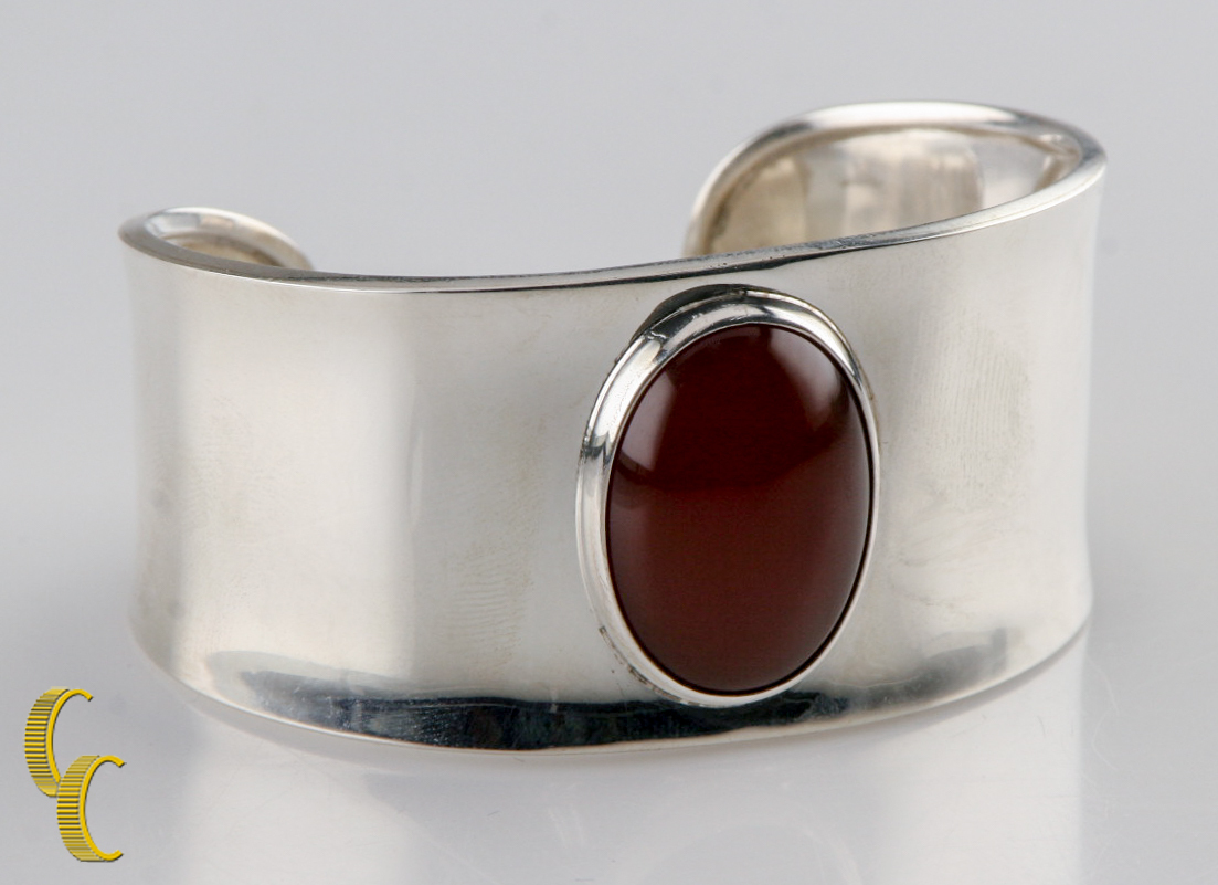 Argent Sterling Mexico .925 Poli Manchette Bracelet Pierre Rouge Cadeau