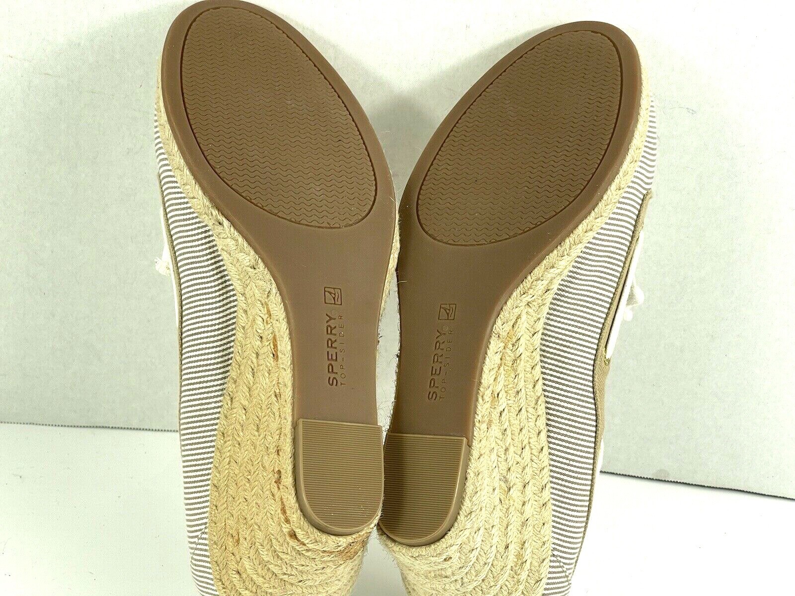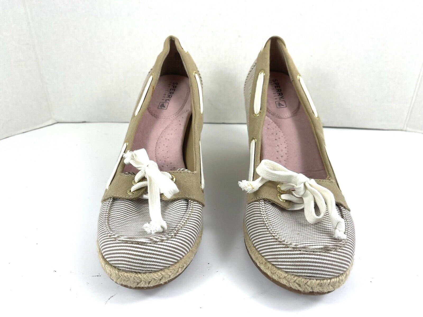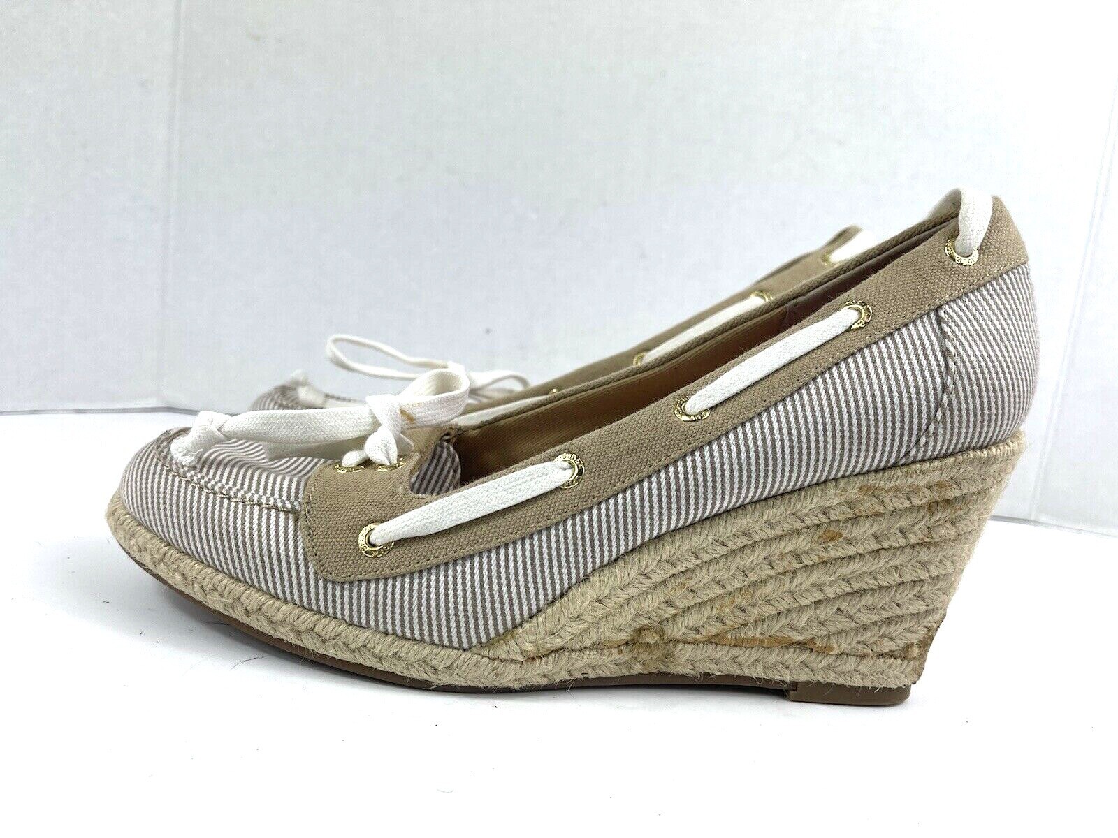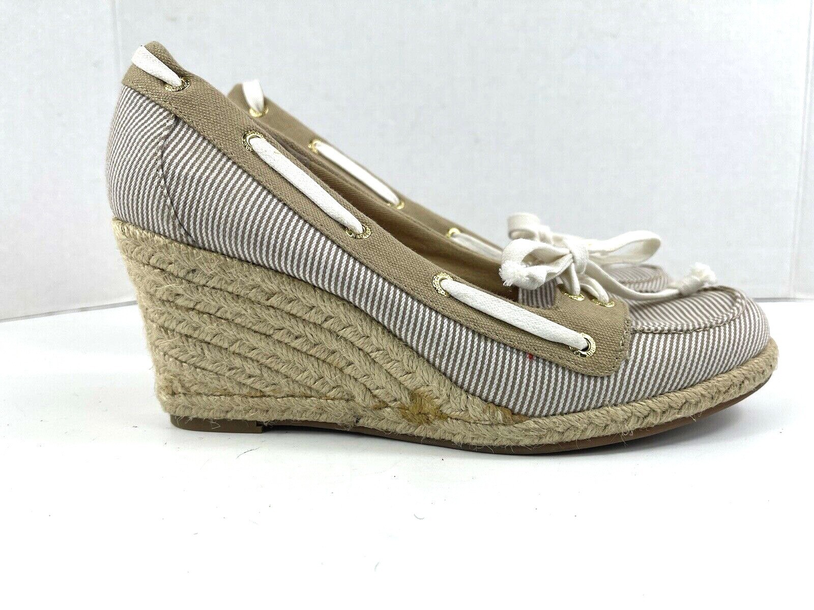 SPERRY Top-Sider Espadrilles Heels Women 8.5 Clarens Shoes Brown Pinstripe Wedge
