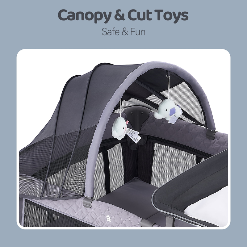 Unisex Portable Baby Play Yard Include Wheels, Canopy, Changing Table for Newborn(Grey)