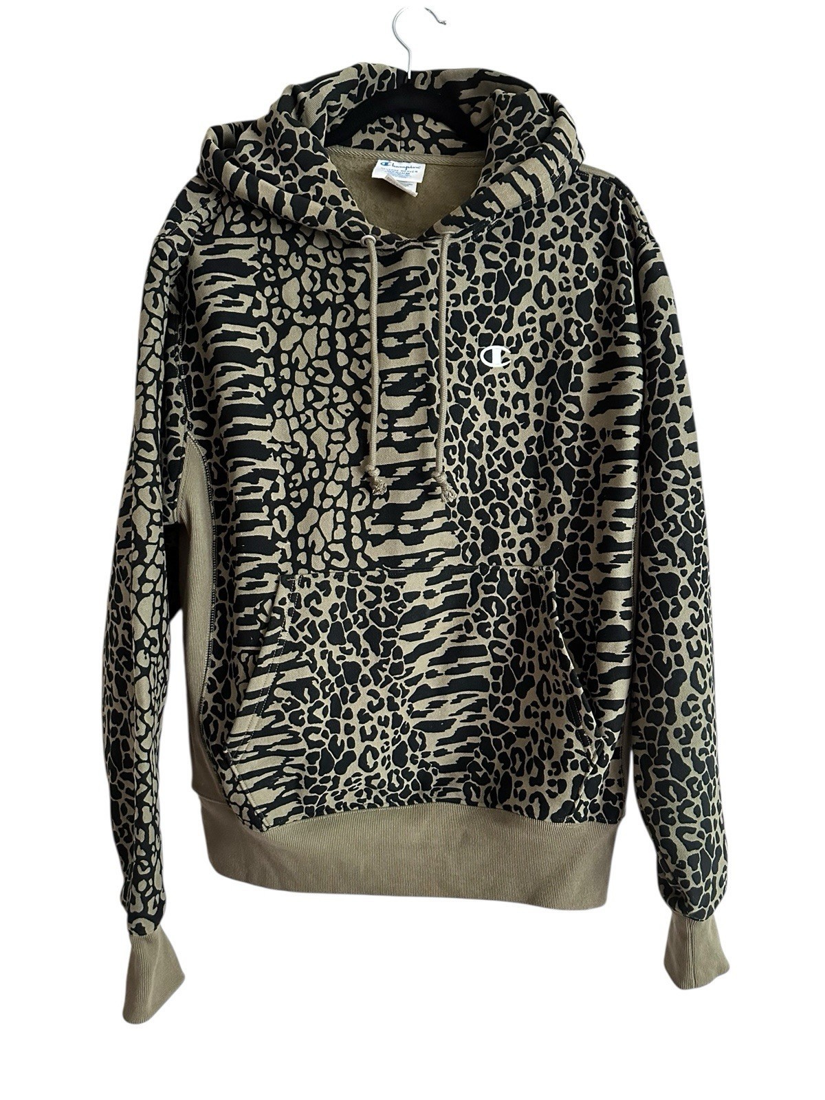 Champion Reverse Weave Powerblend Hoodie M Man Animal Print Black Green Unisex