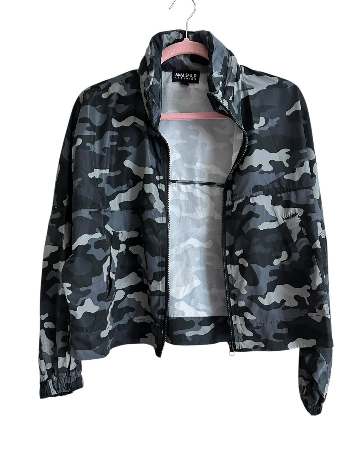 Mom Squad Clothing Cropped Camo Jacket M W/hidden Hood Grey. Condition is Pre-owned - Excellent. Shipped with USPS Ground Advantage.