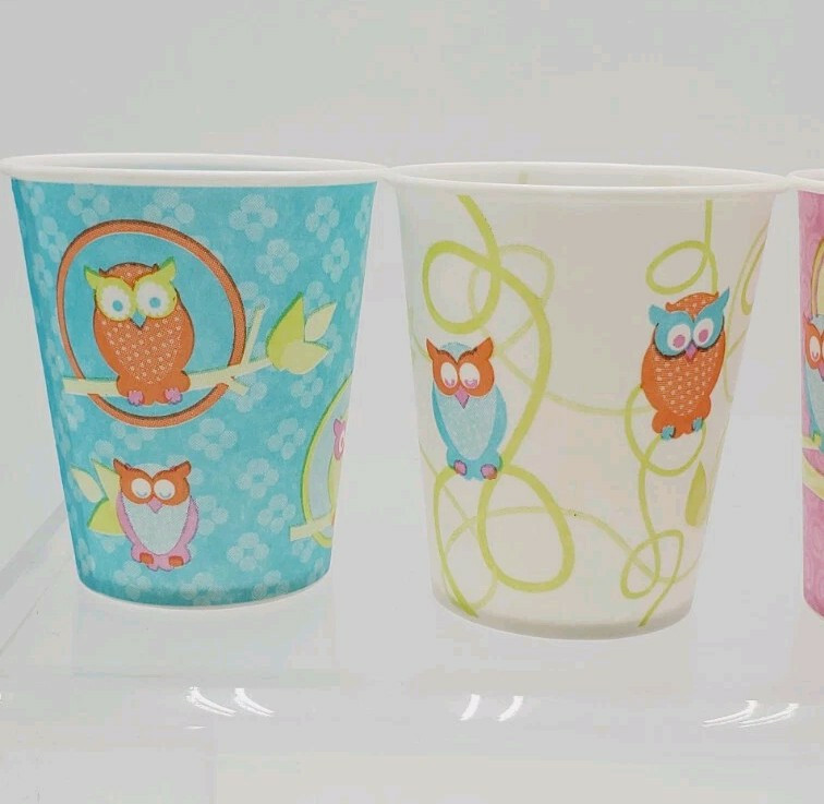 Dixie Cup Owl 5oz All Purpose Disposable Opened Box 2012 4 Designs Half Full
