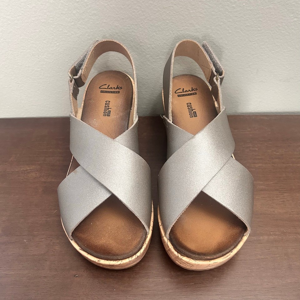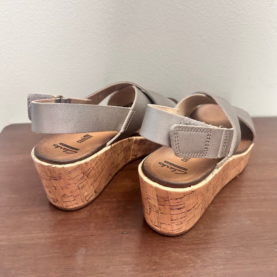 Clarks Collection Light Gray Straps Soft Cushion Wedge Sandal Sz 6