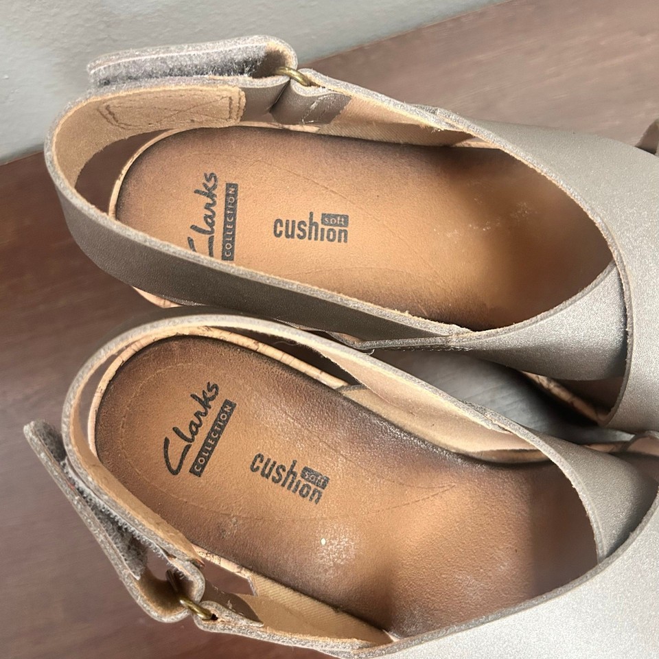 Step into comfort and style with these Clarks Collection wedge sandals! These stylish sandals feature soft gray straps and a cushioned footbed, perfect for all-day wear. The wedge heel adds a touch of elegance while still providing excellent support. Ideal for casual outings or dressing up a summer look. These sandals are in excellent condition and ready for a new home. Don't miss out on the perfect blend of comfort and fashion! Make these yours today!