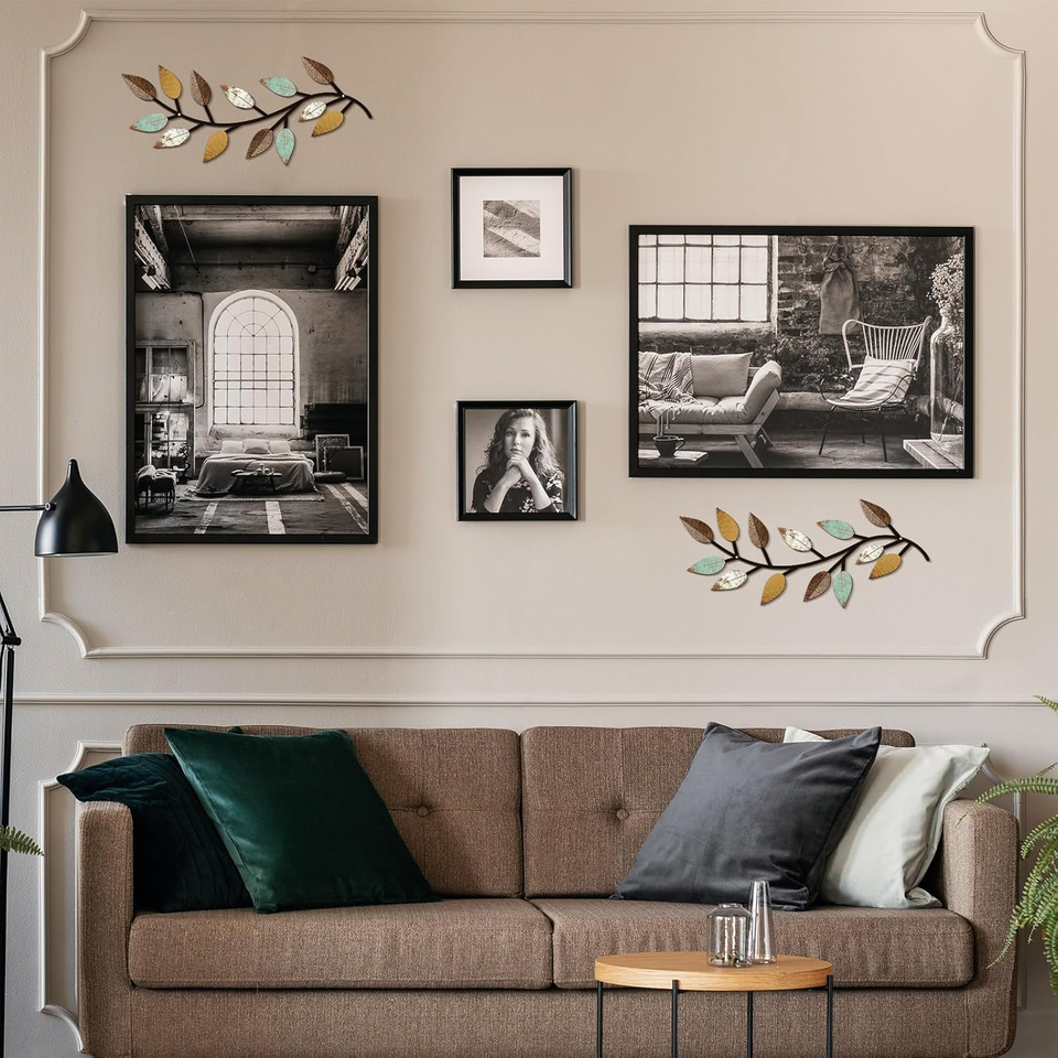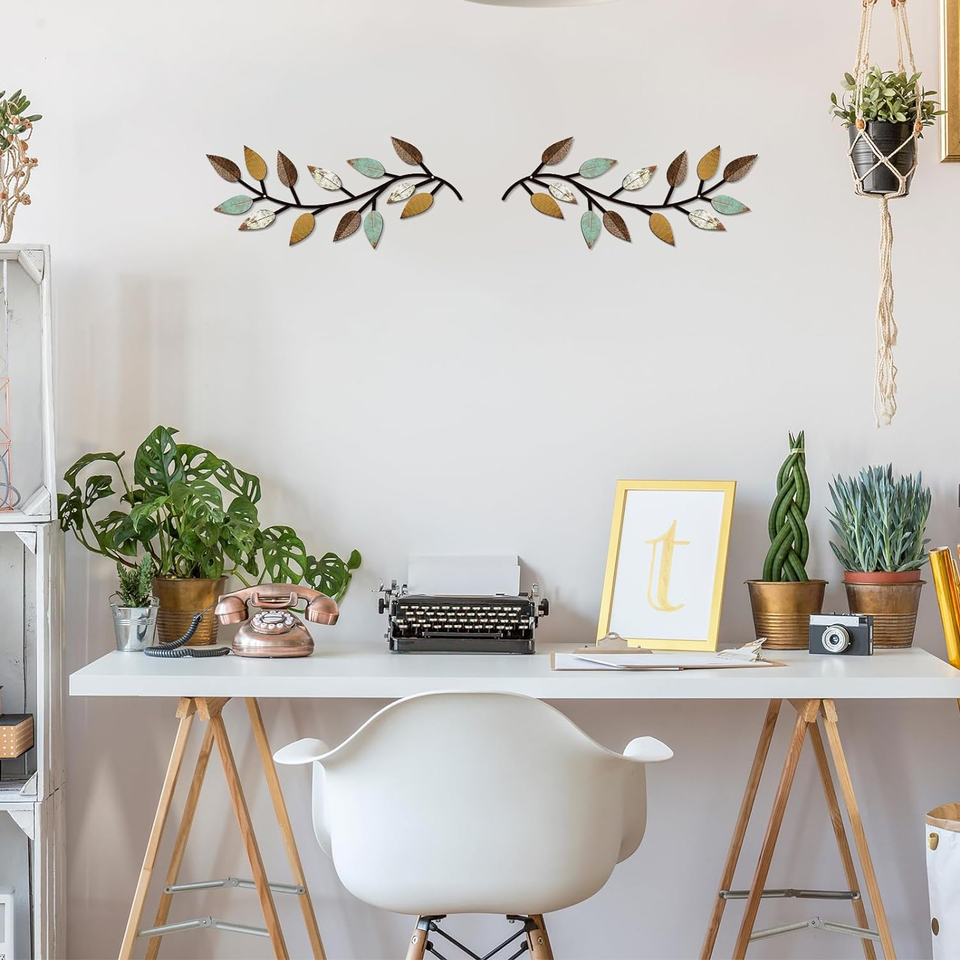 2 Pieces Metal Tree Leaf Wall Decor Vine Olive Branch Leaf Wall Art Living Room,