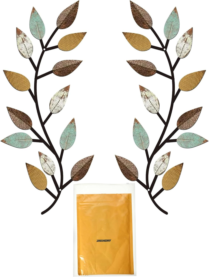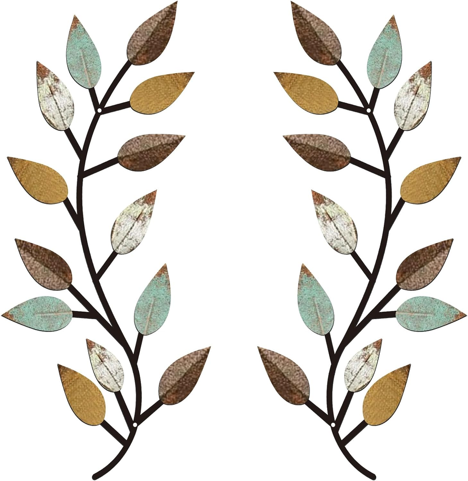 2 Pieces Metal Tree Leaf Wall Decor Vine Olive Branch Leaf Wall Art Living Room, Hallway Wall Decor Outdoor Decoration(Bright Colors)