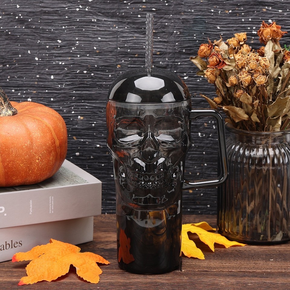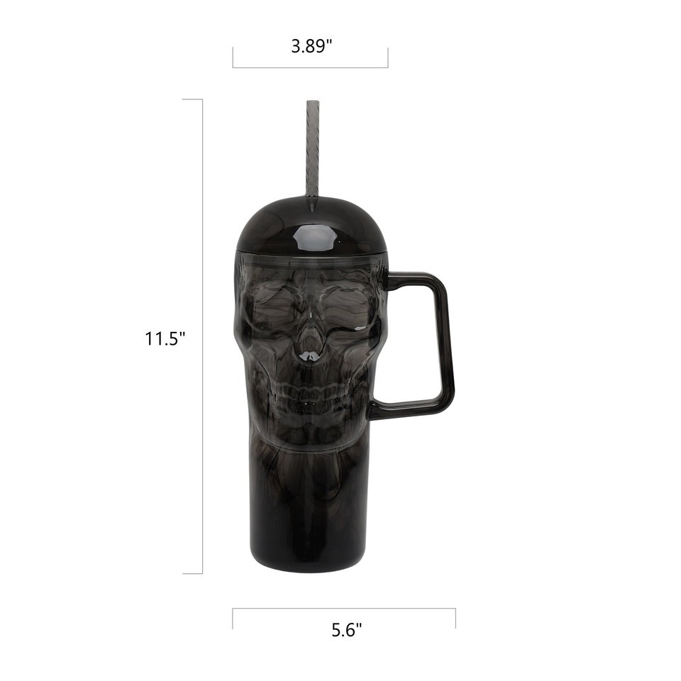 Get into the Halloween spirit with our 30-ounce Acrylic Skull Tumbler, available in two festive colorways that add a touch of spooky charm to your drinkware collection. Designed to fit in most cup holders, this tumbler combines style and practicality with an ergonomic handle for easy carrying. Made from high-quality BPA-free acrylic, it ensures safe use and is top-rack dishwasher safe for effortless cleaning. This tumbler includes a reusable straw and a tightly sealed pull off lid with tab , making it perfect for both indoor and outdoor activities. Whether you are hosting a Halloween party, enjoying your favorite beverage at home, or looking for a unique gift, this versatile tumbler is great for entertaining, everyday use, or gifting. Embrace the Halloween season with this one of a kind skull tumbler.