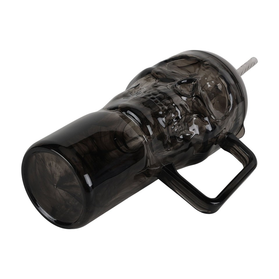 30 Ounce Acrylic Skull Tumbler with Straw and Handle, Black Swirl