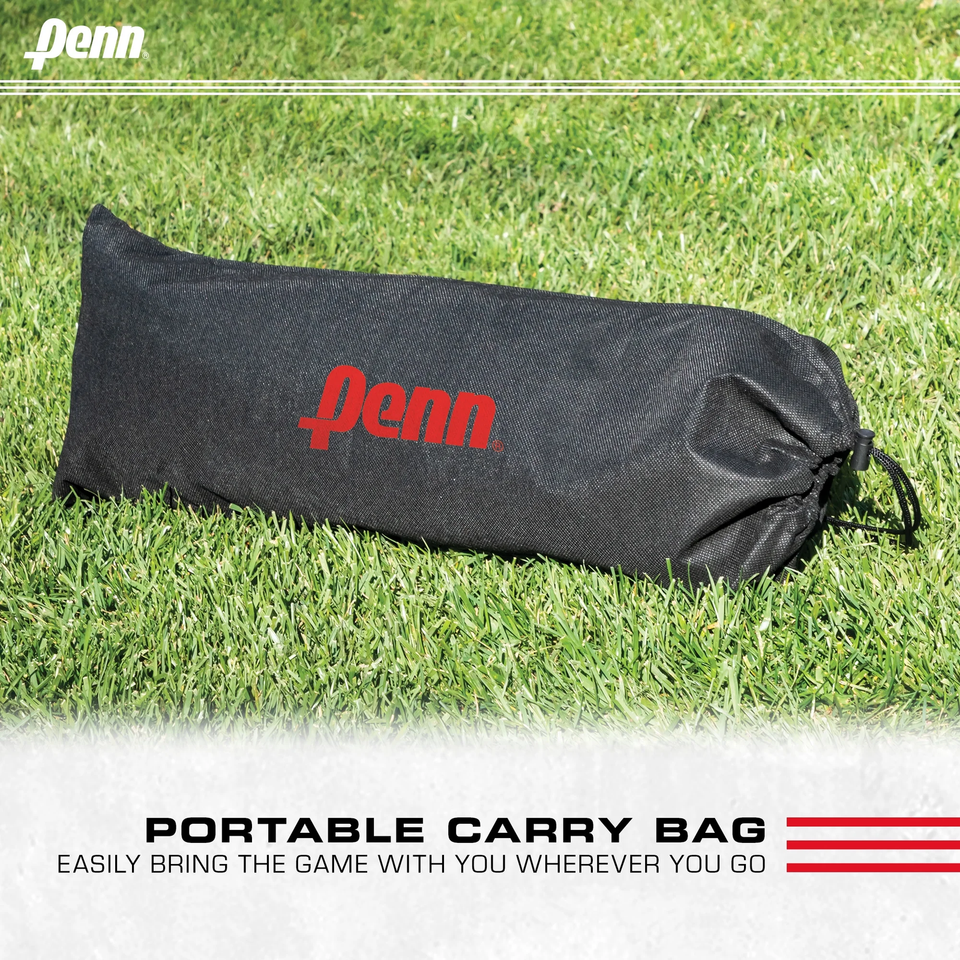 Finally, a volleyball set made to fit just about any yard! The latest from Penn, the leading brand in net sports, is the Easy Fit Premium Volleyball Set. This adjustable length volleyball net extends from 10 feet to 30 feet and can be played 1-on-1, 2-on-2 or full 6-on-6. The easy setup net and post is designed for one person to easily setup in just a few minutes. This super portable net set easily collapses, rolls up, and slides into the carry bag to take and play anywhere! Complete with competition grade volleyball, this set is ready for bumping, setting, and spiking, anytime, anywhere!