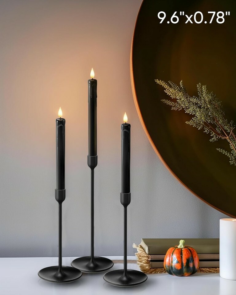 Black Flameless Taper Candles Flickering, NO Remote, 9.6 Inches Battery Operated