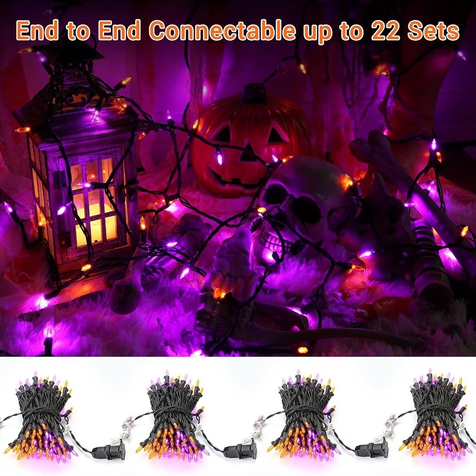 Purple & Orange Halloween Lights, 33Ft 100 LED Halloween String Lights, 120V UL