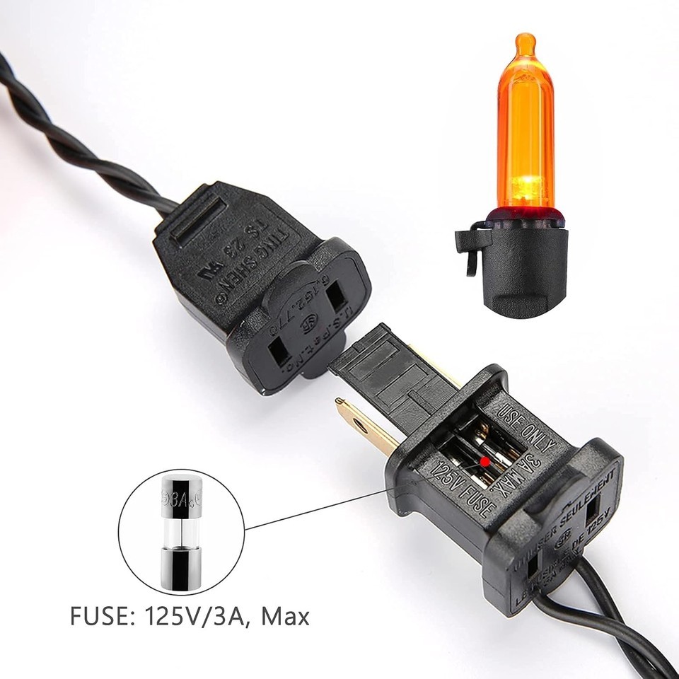 Connectable: Connect end to end up to 22 sets(2,200 lights), allow you to decorate your home both inside and outside with your desired length; UL Certified great value and quality, Replaceable fuse plug; Extra bulbs and fuse included.