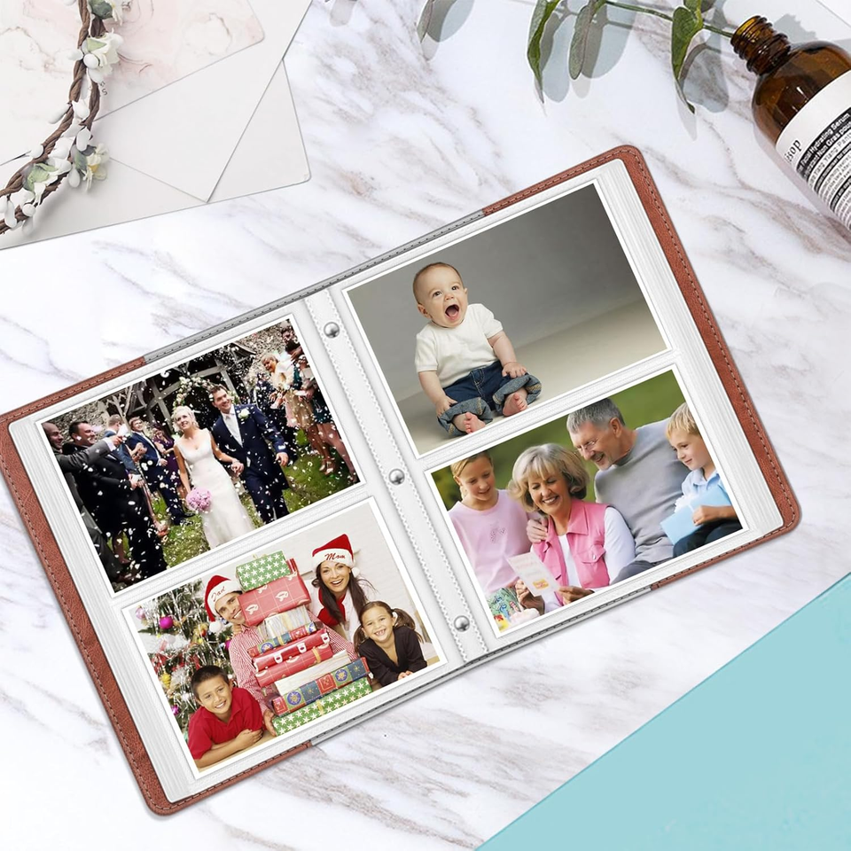 Premium PU leather cover and clear PVC inner picture pockets are fashion and durable. Steady bonding between the cover and inner pages ensures high quality. Inner picture pockets size: 10.3 x 16.5cm. *** Fit photo size 4" x 6"(10.2 x 15.2 cm), NOT FIT 4oe" x 6"(11.4 x 15.2 cm).