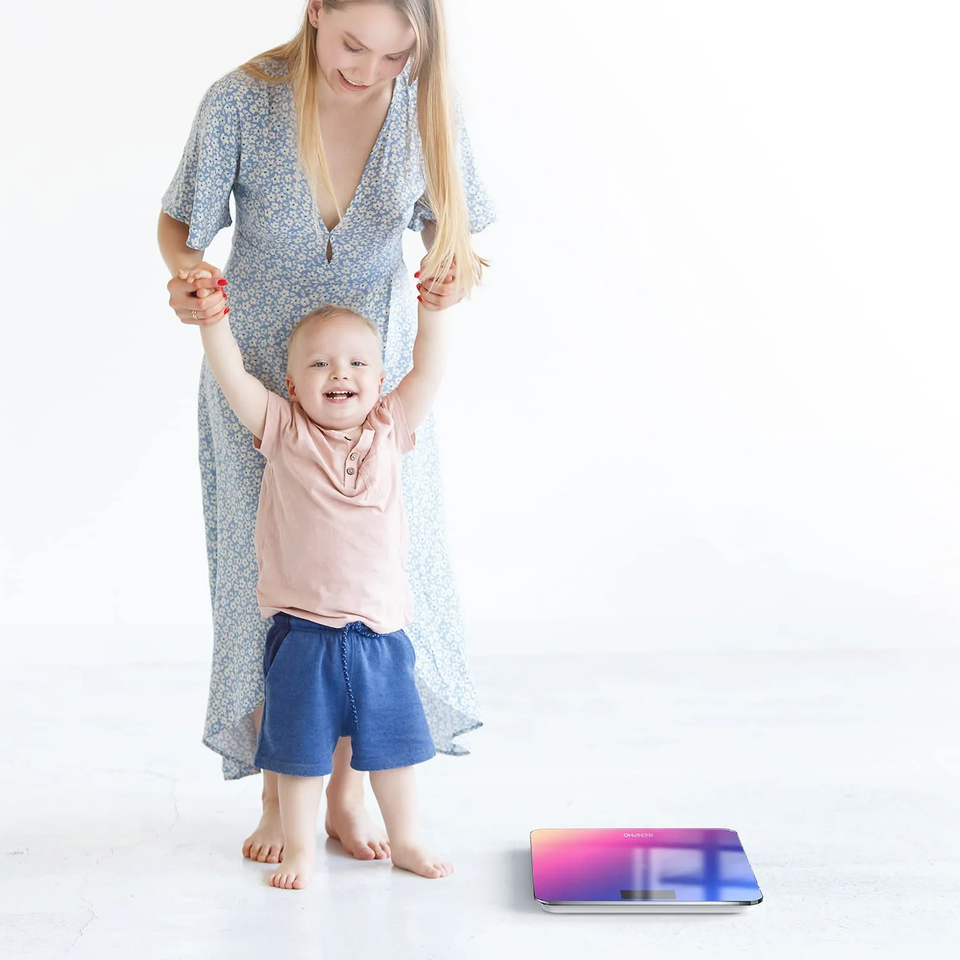 Your High Precision Weight Assistant. This RENPHO digital scale is a good assistant to help you reach your fitness goal easily and quickly. It is simple to set up, easy to use and has an attractive smaller design that is ideal for any space. This body weight scale calibrates itself, and thanks to the bright LED display, just step on the scale and read your weight number immediately and clearly. Easy to change the weight units among lb, kg by pressing the button on the back of the weighing scale. 4 high precision weight sensors work together to ensure the accurate measurements with the graduation of 0.1lb/0.05kg. The weight scale uses 4 anti-slip and scratch-resistant pads to keep the weighing platform stable while taking measurements, prevent slipping and protect your floor. Rounded corners make the weight scale look sleek, and they?ll also spare household members from sharp corners. Made by high-quality tempered glass, only 5mm thickness. Grinding the edge of glass won't hurt your skin. Super durable and safe. This weight scale looks great and easily fits into almost anywhere in your bedroom or office, tracks your progress with extra convenience.