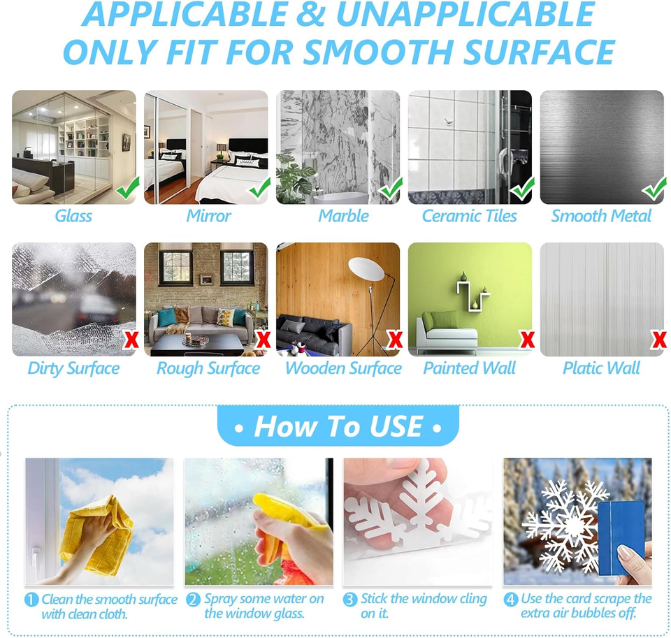 135Pcs Christmas Window Clings Snowflakes Window Decals Static Window Stickers