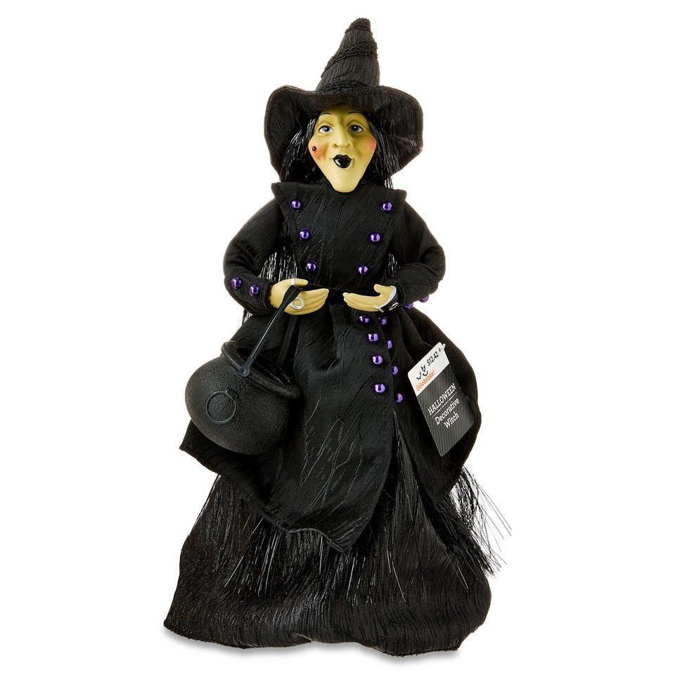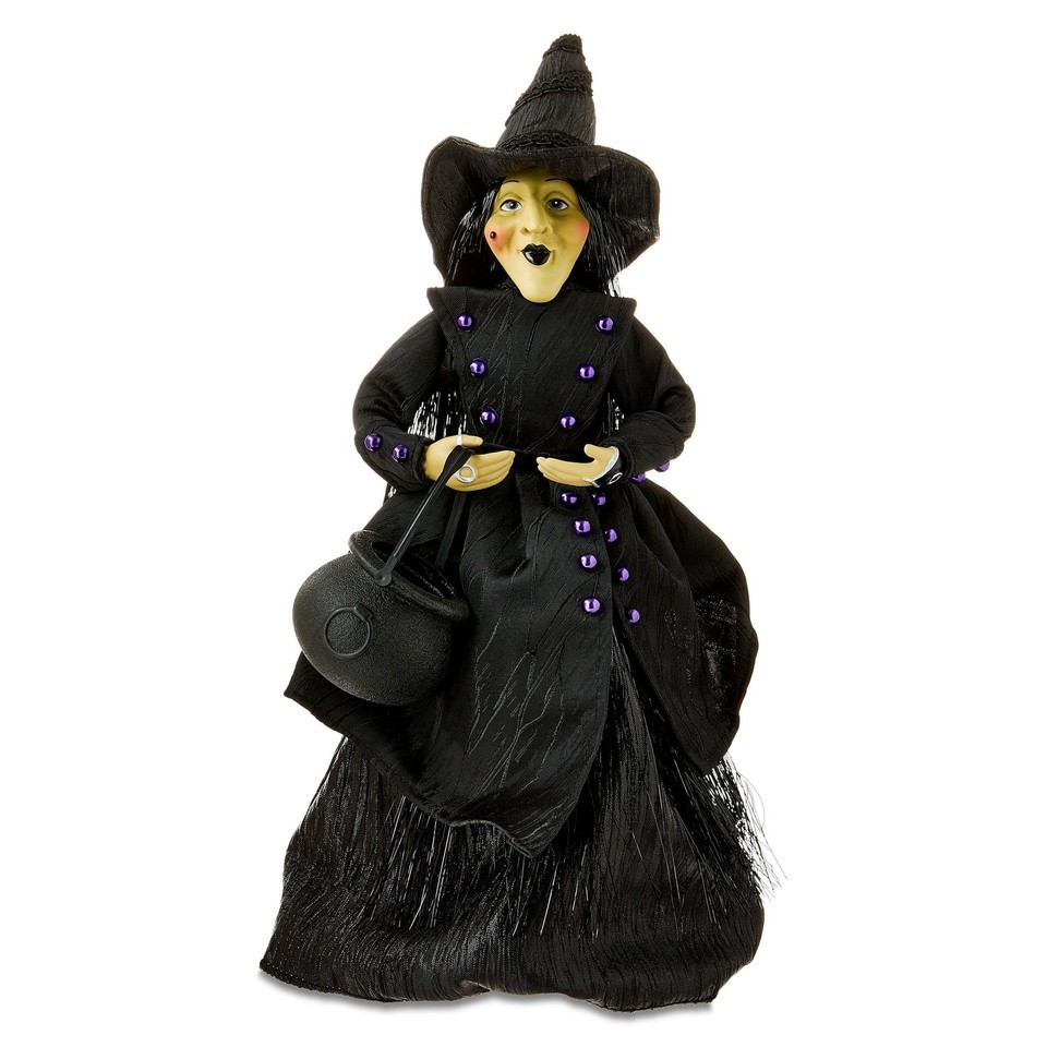 Way To Celebrate Halloween Witch with Cauldron Tabletop Decor Stands 15 inches tall for an eye-catching Halloween display Features a detailed witch in flowing black with purple accents Comes with a mini cauldron for added character and storytelling Perfect for mantels, side tables, or party centerpieces Lightweight design makes it easy to position and store