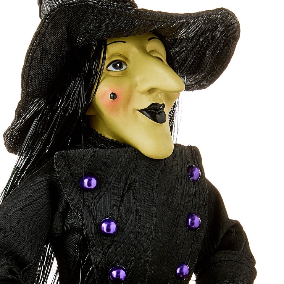 Add a touch of theatrical flair to your Halloween setup with the Way To Celebrate Halloween Witch with Cauldron Tabletop Decor. This 15-inch figure features a classic witch dressed in flowing black fabric, complete with a pointy hat, detailed face, and a cauldron in hand ready for her next spell. Purple buttons add just the right pop of color to her dark ensemble. Whether perched on a mantel, table, or entryway shelf, she brings old-school Halloween drama to your space. Stir up some spooky charm with the Way To Celebrate Halloween Witch with Cauldron Tabletop Decor.