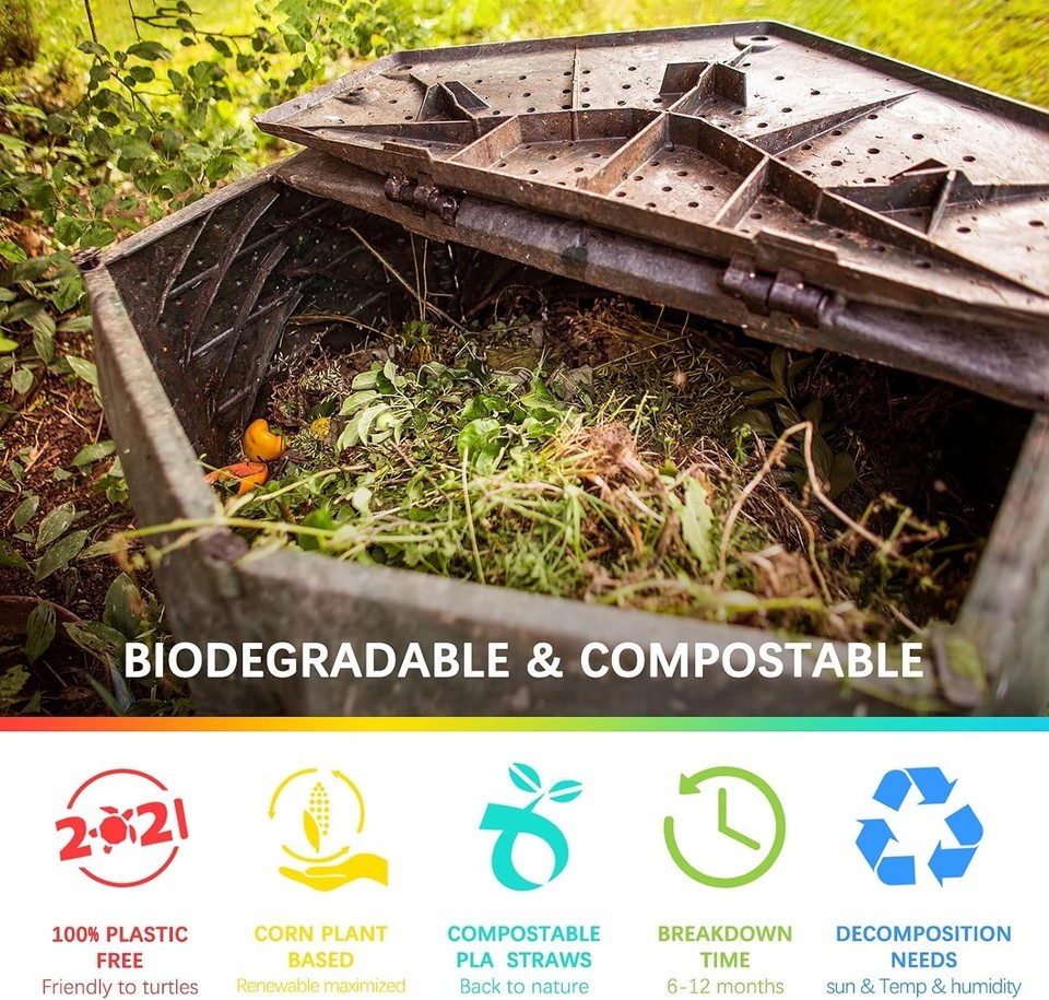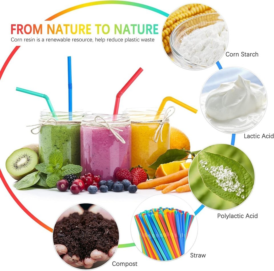 100% Real Biodegradable Compostable PLA Straws: Cornstarch made. Renewable resource. After many times of processing, no corn flavor, suitable for those who are allergic to corn. Look/feel like plastic but actually natural food-grade PLA straws, environmentally friendly, fully functional. Healthier, greener, The best replacement for plastic straws drinking. How to judge PLA straw? Cut, put it into bottle with water, stir/shake it, if it sinks into the water, It?s PLA (Polylactic Acid) Straw