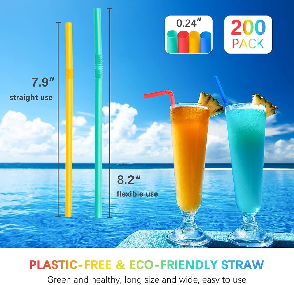 Plasticless 100 PCS Disposable Drinking Straws, Eco Friendly Straws Drinking Plastic Free 8.2" Long