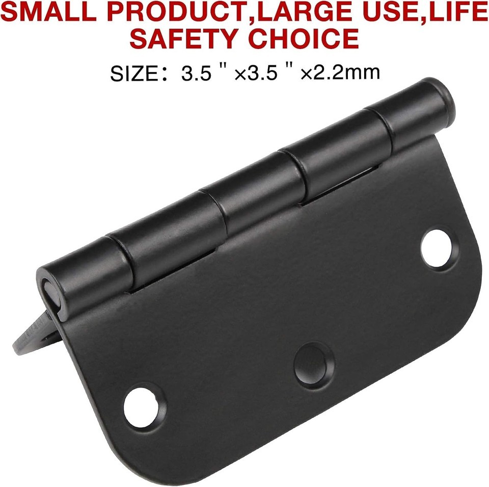 Door hinges Black Matte 3.5 inch with 5/8 rounded corners and 6 holes for front door,cabinet,wooden box.Safe black door hinges 3.5" Includes 180 free screws for quick and easy installation.Mat black door hinges can be rotated 270 degrees.The extra long screws will come in handy specially when replacing existing hardware using the same hole pattern.