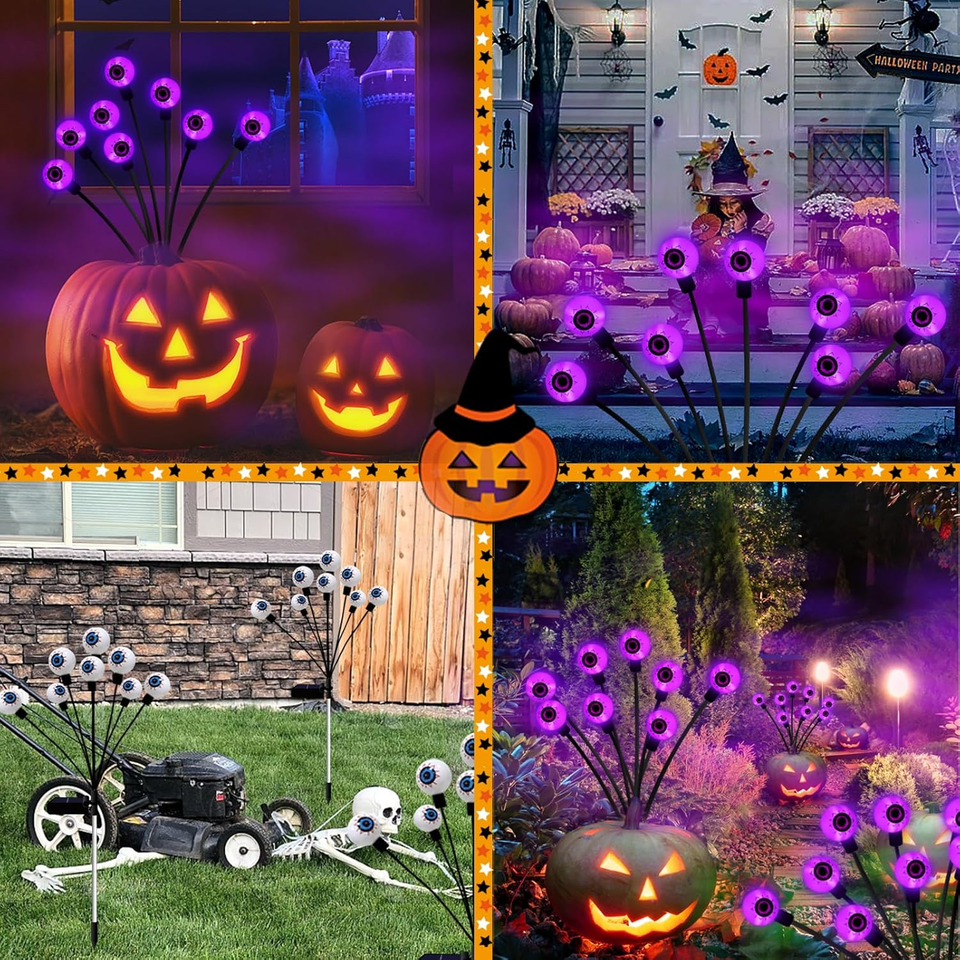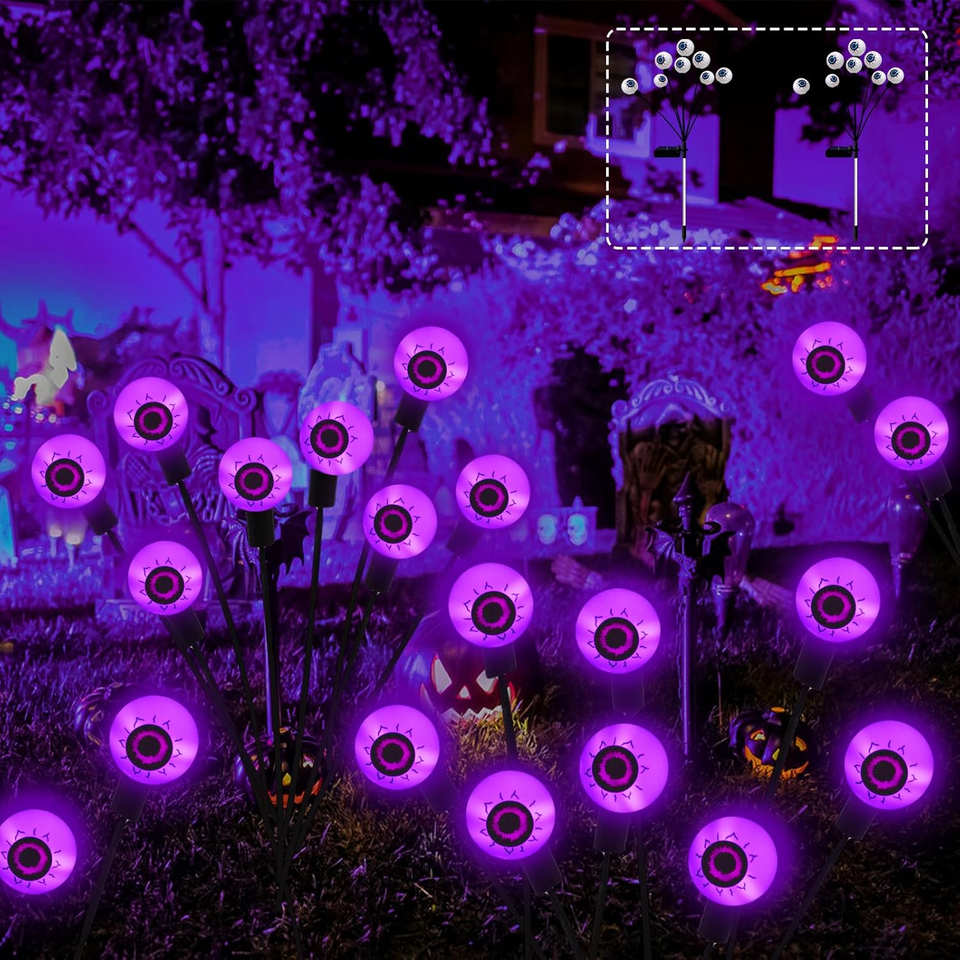 Halloween Decorations Outdoor Solar Eyeball Lights 2 Pack of 16LED Lights