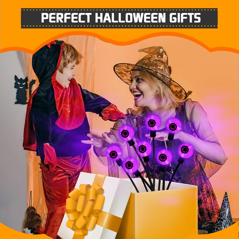 ??Perfect Halloween Gifts?Our solar eyeball lights have two packs, 16 LED lights total, bright and vivid purple eyeballs create a thick Halloween atmosphere. Give it as a Halloween gifts to your family, neighbors and friends and enjoy these fun Halloween home decorations together!