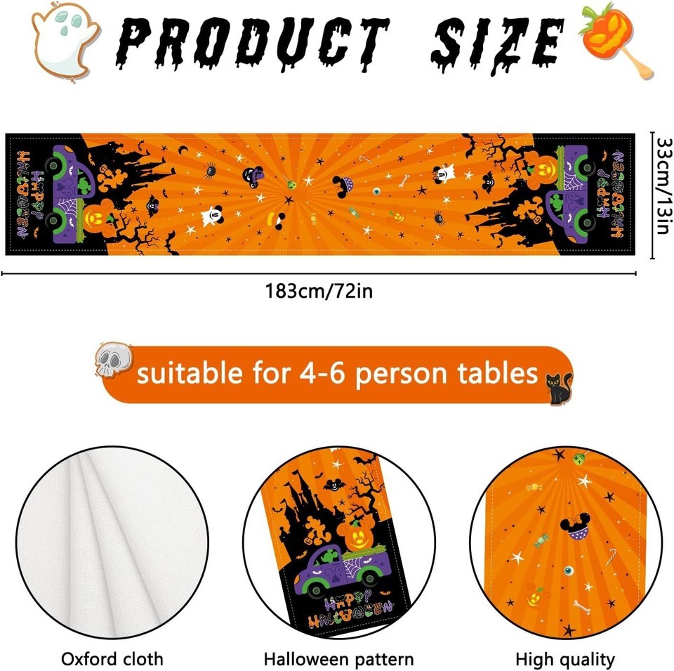 Ideal Size: Our Halloween table runner measures 72 inches in length and 13 inches in width, suitable for a table that can seat 4 to 6 people. The appropriate size ensures that this Halloween table runner can perfectly cover the edge of the table without being too short or overly bulky