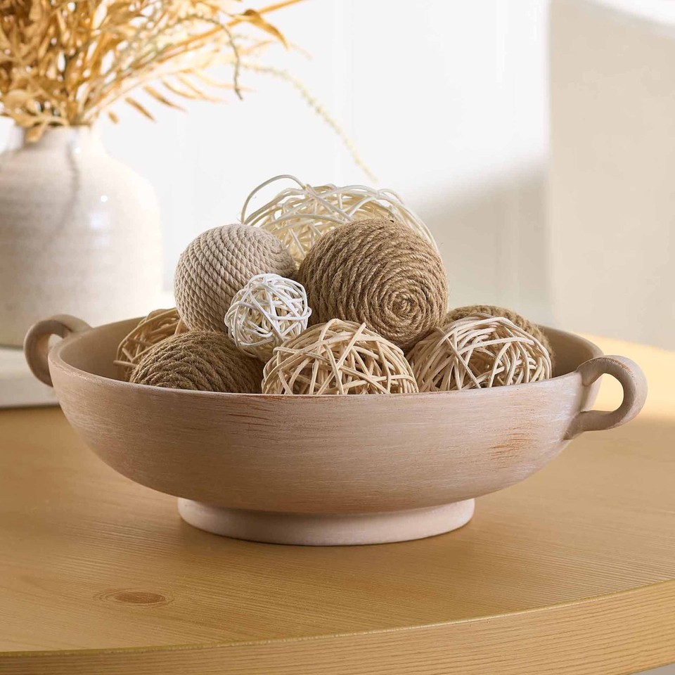 Add a touch of handmade elegance to your tabletop with the Better Homes Gardens 9.75" Ceramic Low Stone Distressed Bowl, Taupe. The low stone bowl has a subtle taupe color that allows it to complement a variety of home decor styles. Use it to display little moss balls or leave it empty - either way it makes a beautiful addition to your decor. This bowl is also a great gift to give for holidays, housewarmings, birthdays and more. It measures approximately 3.5? high and is approximately 11.75? in diameter, making it the perfect size to display on a entry way table, coffee table, tabletop, vanity and more.