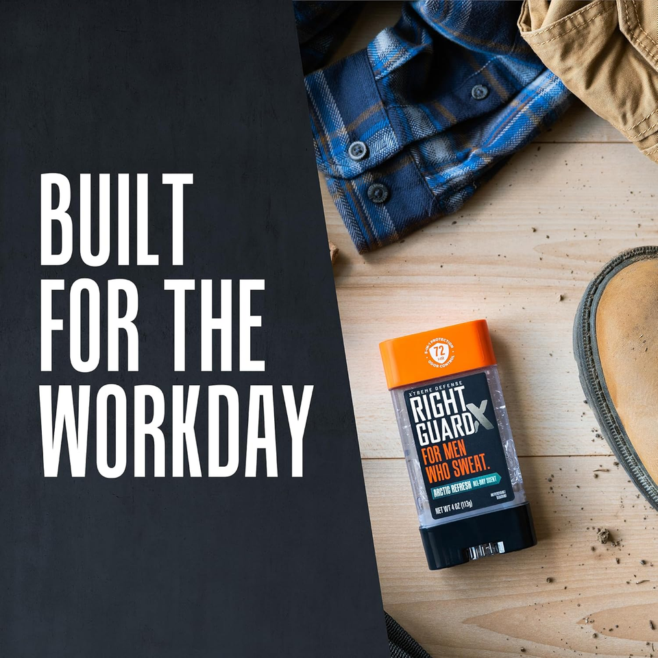 Take on whatever your day throws at you with confidence, thanks to Right Guard Xtreme Defense Antiperspirant Deodorant in our Arctic Refresh Scent. This powerful 4-pack of 4 oz gel is designed to deliver 5-in-1 protection that men can rely on?whether you?re grinding through a long shift or pushing your limits on a job site. Formulated for tough jobs and long work days, this deodorant and antiperspirant offers up to 72 hours of odor control and blocks sweat 2X longer than ordinary antiperspirant formulas. The gel glides on smooth and is gentle on skin?so you get clean protection without the mess. The Arctic Refresh scent delivers a cool, crisp burst of freshness that lasts all day, keeping you feeling revitalized no matter how intense your workload gets. Right Guard helps you stay dry, smell great, and stay focused. With over 60 years of expertise under our toolbelt, Right Guard is the deodorant men can trust for dependable sweat and odor protection. Explore our full range of men?s products, including Right Guard Sport Deodorant and the Original Right Guard Spray. Experience trusted protection.