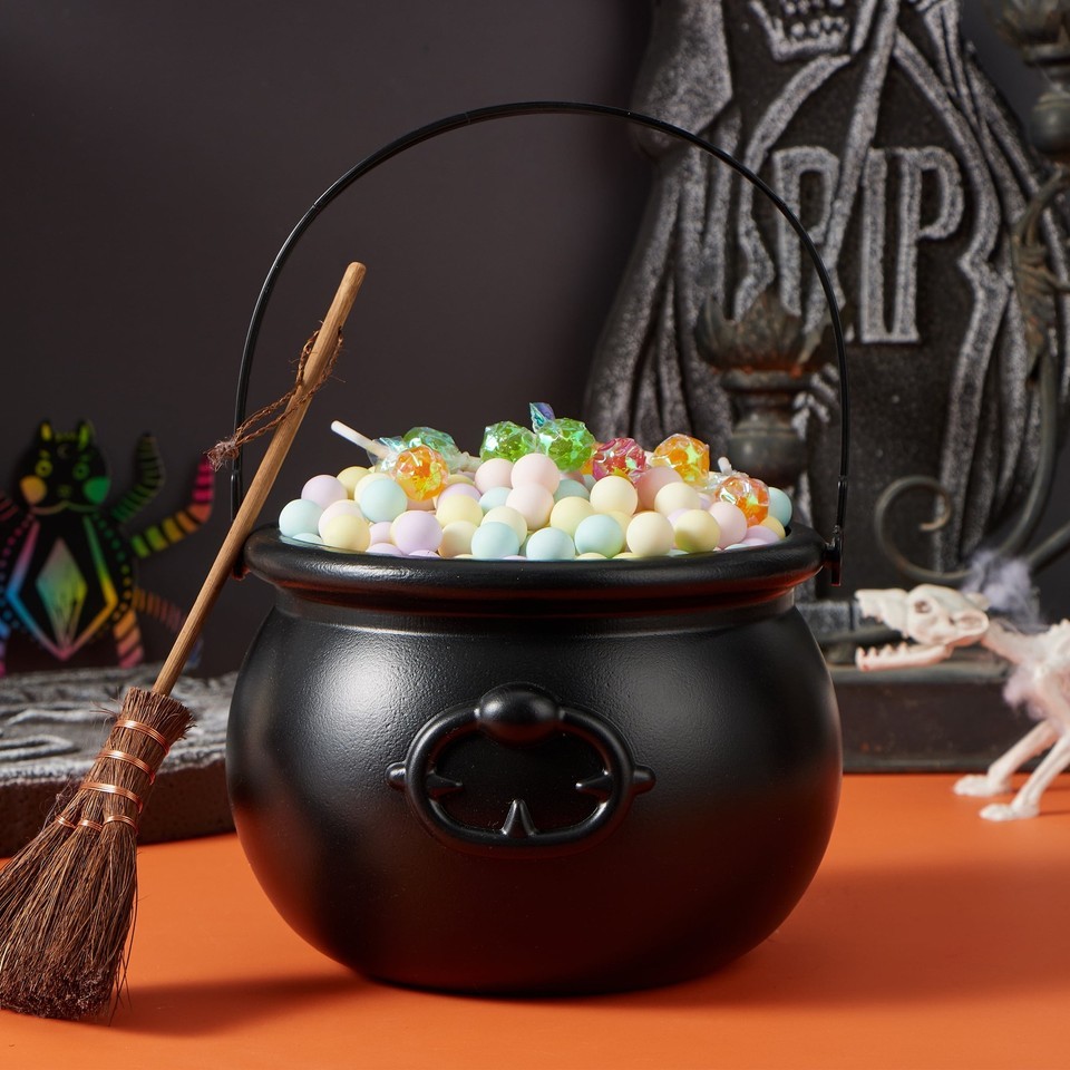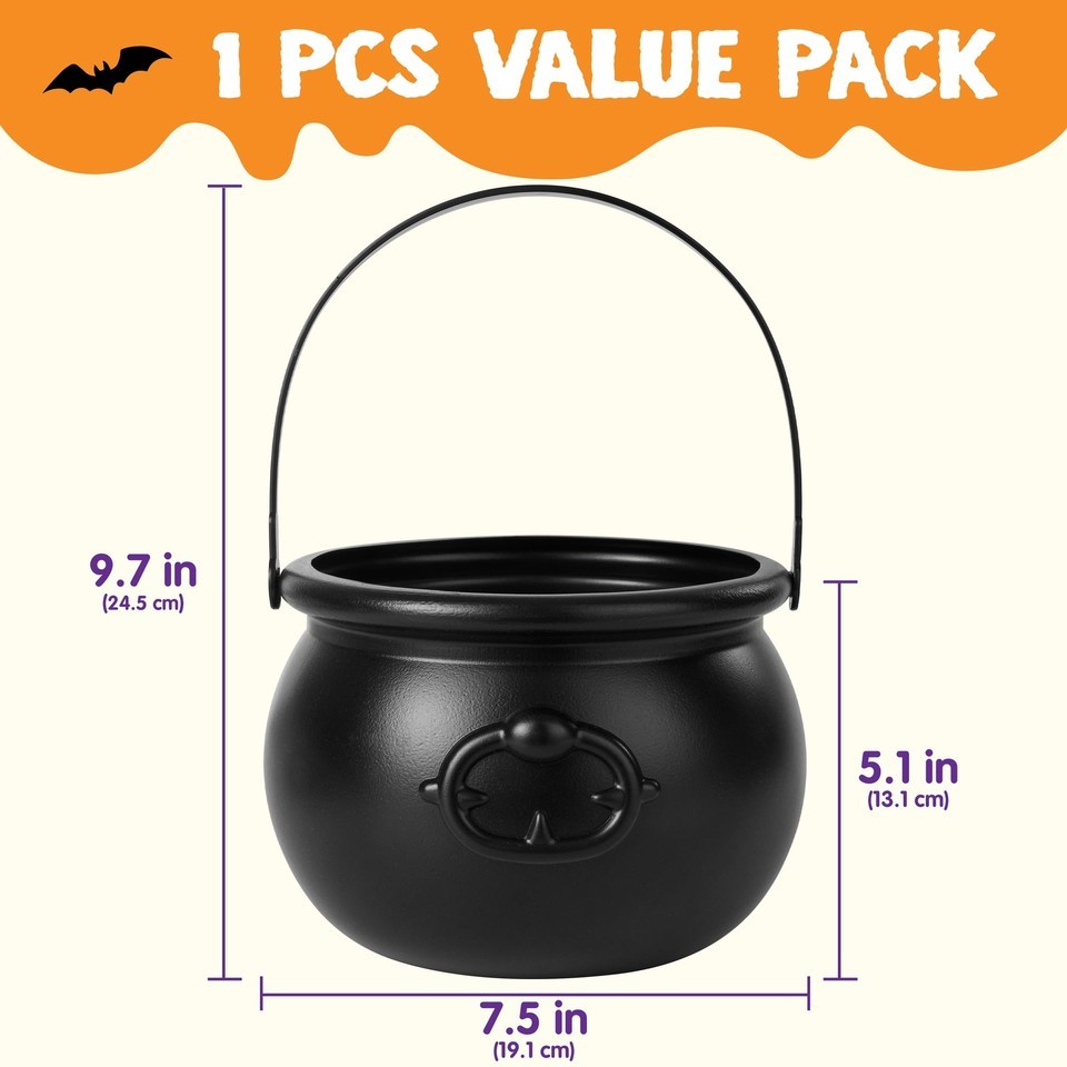 1 Pack Halloween Cauldron with Handle,Large Halloween Candy Bucket Basket Candy