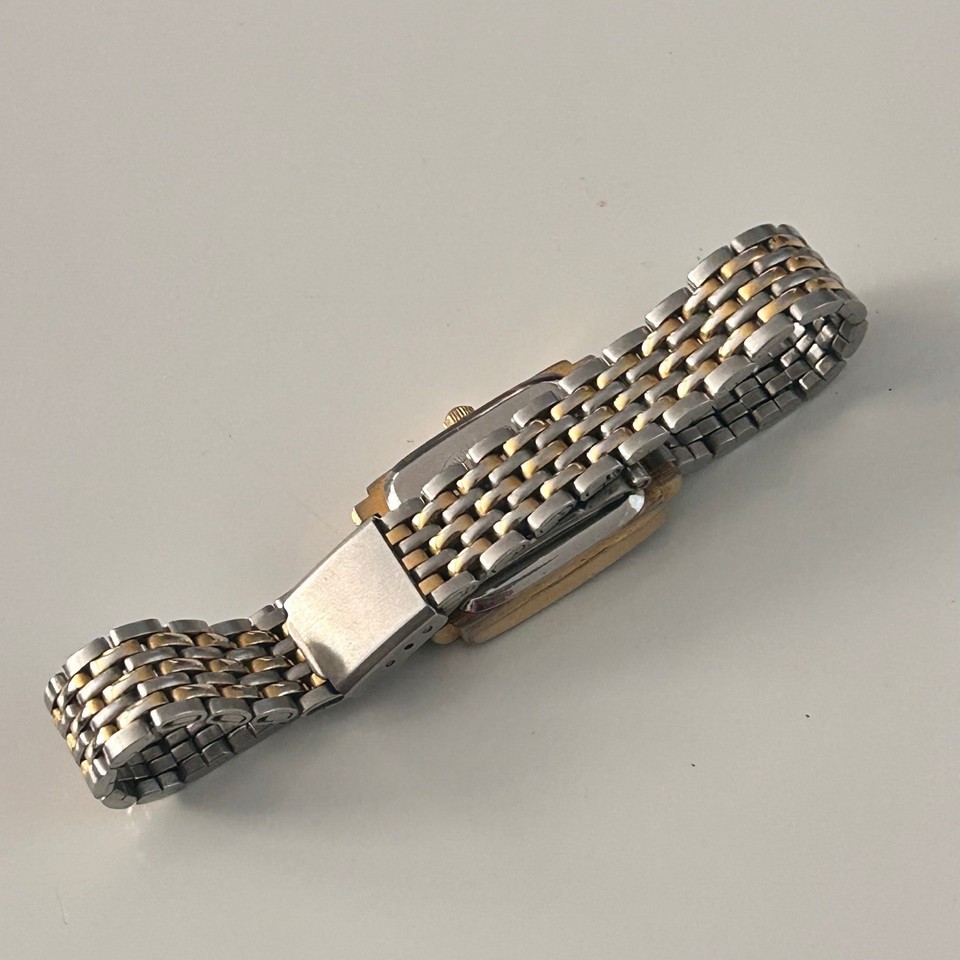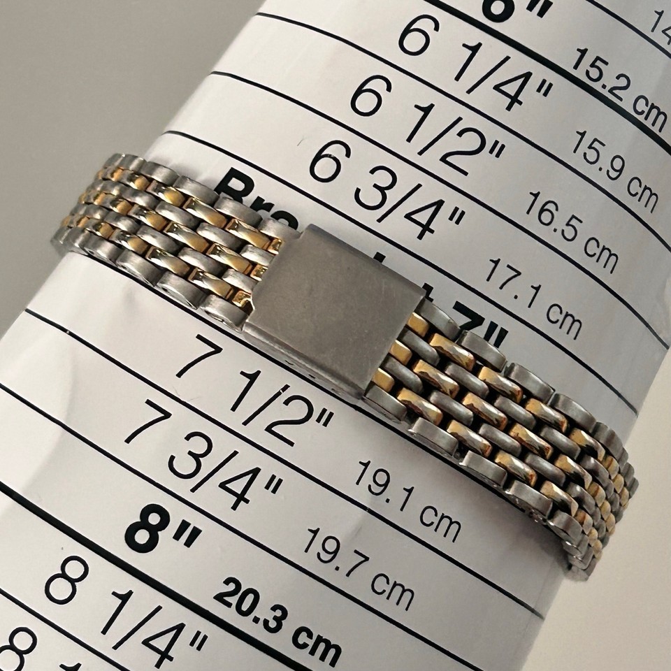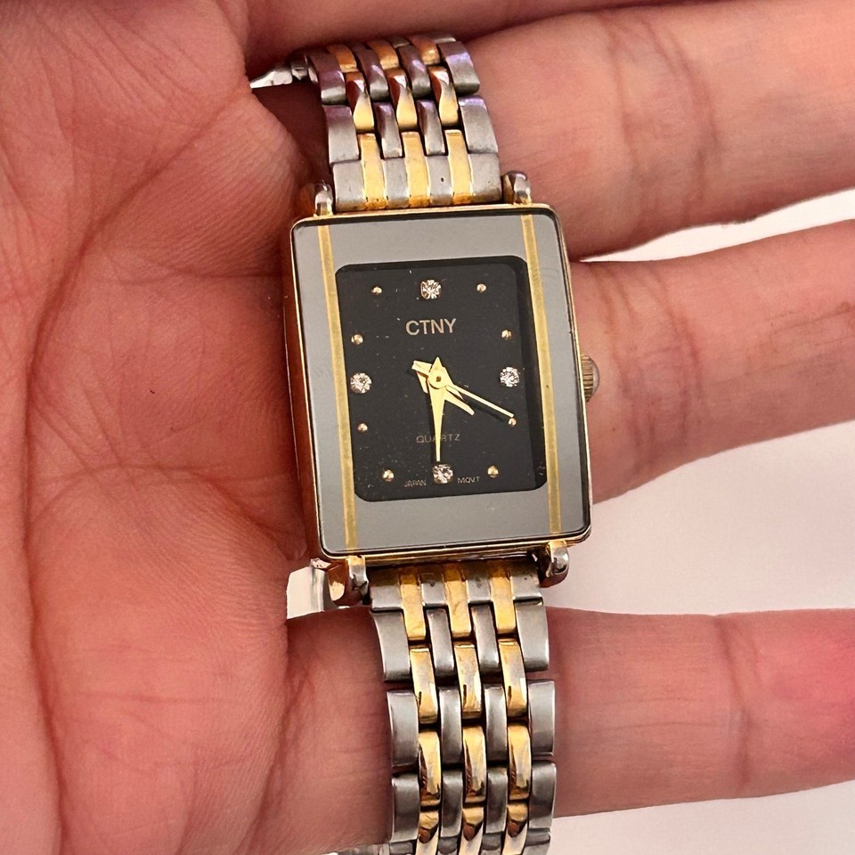 This CTNY women's quartz watch is a stylish and reliable timepiece. With its silver, gold, and black dial, it offers a sophisticated look. The watch features a new battery and is in excellent working condition. The 19mm size makes it a comfortable fit for everyday wear.