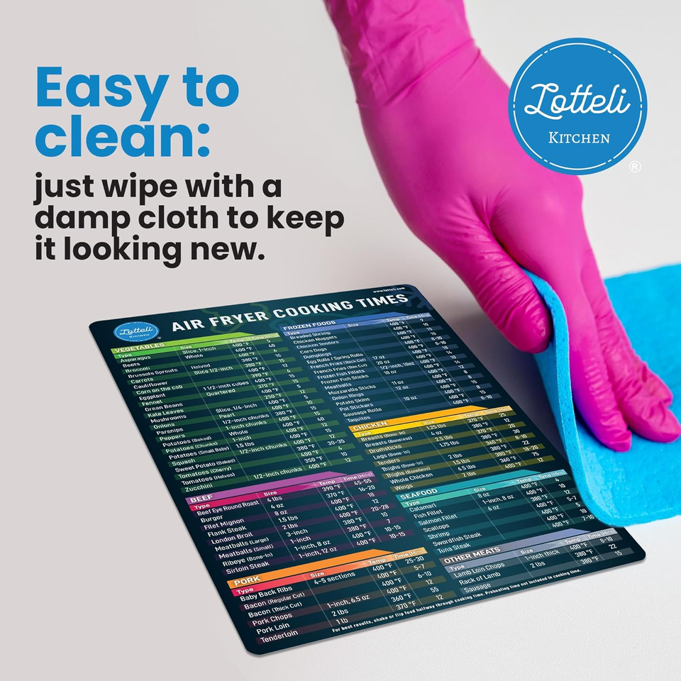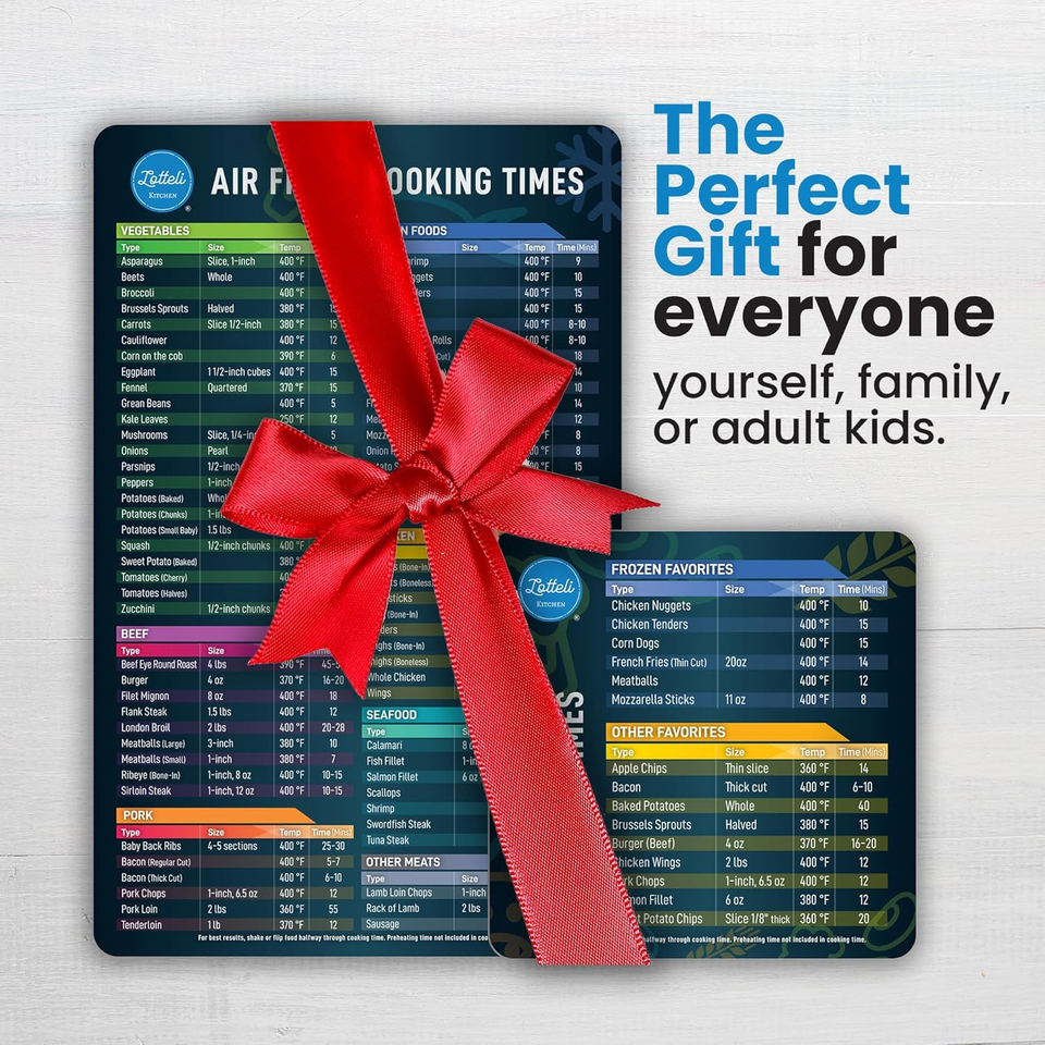PERFECT HOUSEWARMING GIFT: Presented in attractive packaging, our air fryer cheat sheet magnet is a thoughtful gift for anyone who loves to cook. Perfect for anyone, Lotteli makes cooking easier and more enjoyable for both experienced chefs and beginners alike.