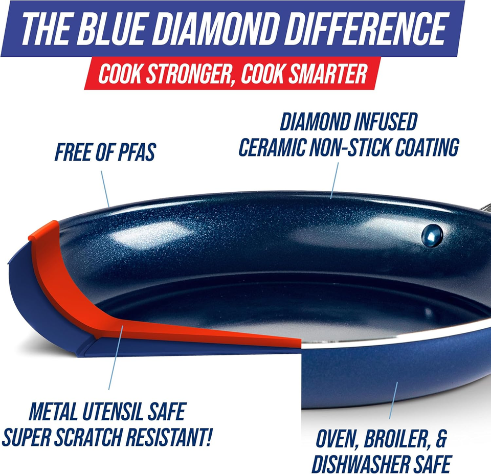 8" Nonstick Frying Pan Skillet, Diamond Infused PFAS & Ptfe-Free Ceramic Pot, Bl