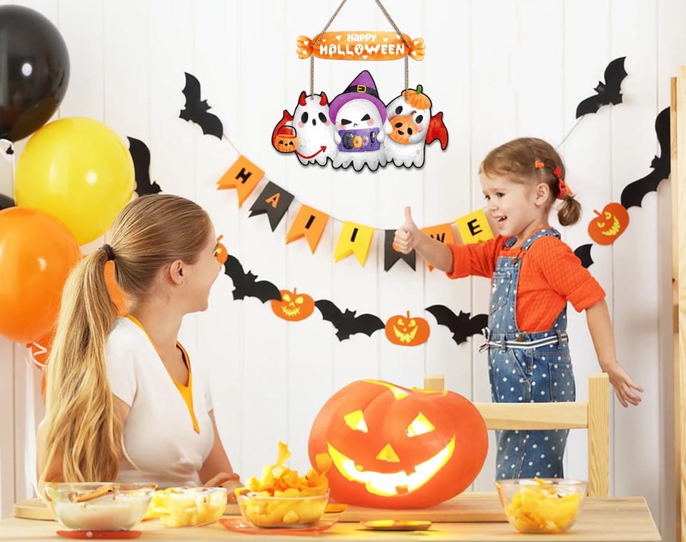 Happy Halloween Ghost Door Decor Hanging Sign Boo Decorations for Halloween Wrea