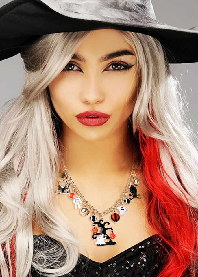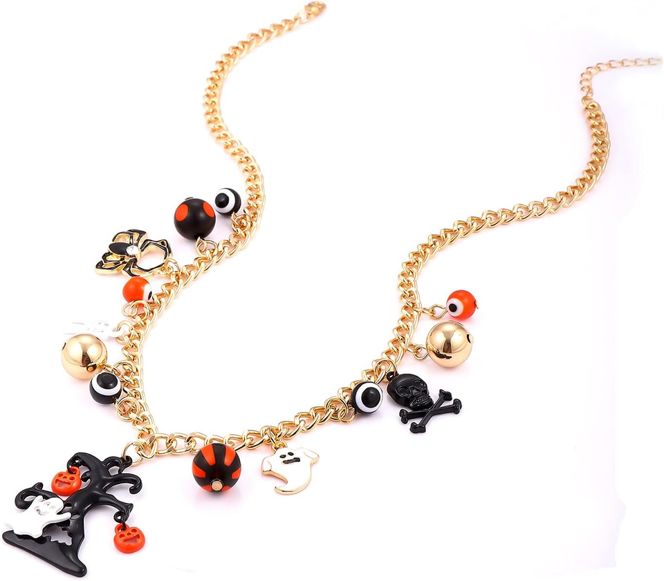 Halloween Pumpkin Pendant Necklace Witch Cat Charms Necklace Party Ghost Long Chain Necklaces for Women