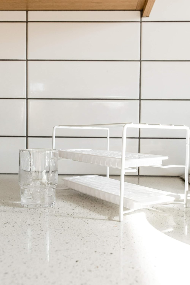 Ice Tray Caddy holds two ice cube trays in freezer to prevent accidental spills. Trays are accessible and easy to use.