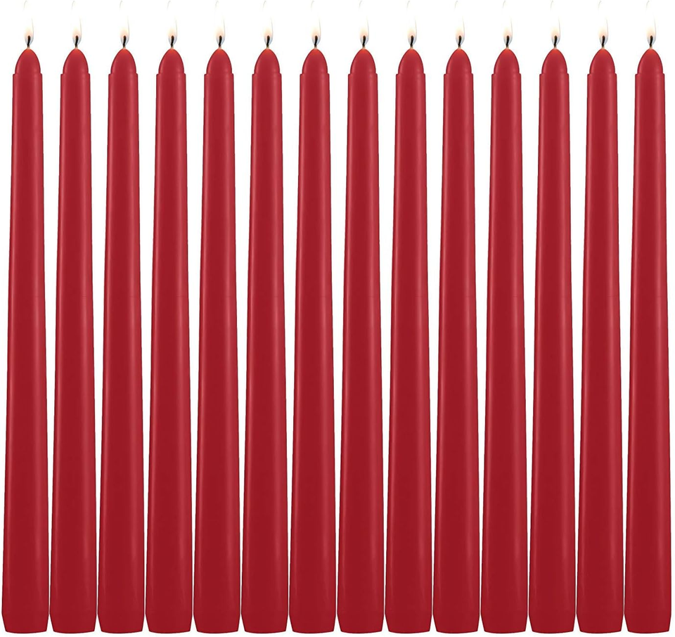 14 Pack Tall Red Taper Candles - 10 Inch Red Dripless, Unscented Dinner Candle - Paraffin Wax with Cotton Wicks - 8 Hour Burn Time.