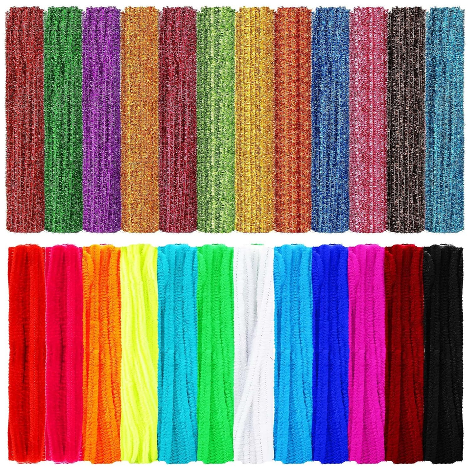 2400 Pcs Pipe Cleaners 24 Assorted Colors Chenille Stems Glitter Pipe Cleaners C